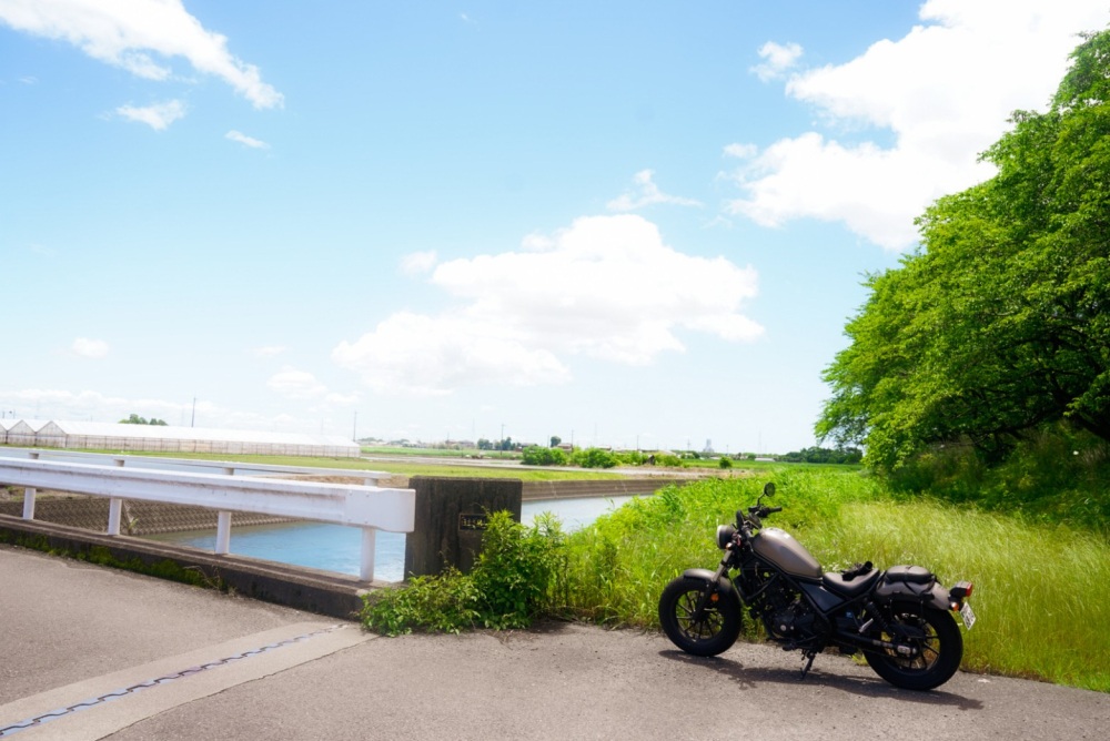 水の都と呼ばれる大垣市は地下水が豊富で、長良川をはじめとする一級河川が流れる場所でもあります。曽根城公園の水の美しさはもちろん、そこへ行くまでの道のりの中で、とても美しい景色に出会うことができました。川や田んぼ、木々や空が美しく、ついバイクを降りて撮影したくなるほどでした。