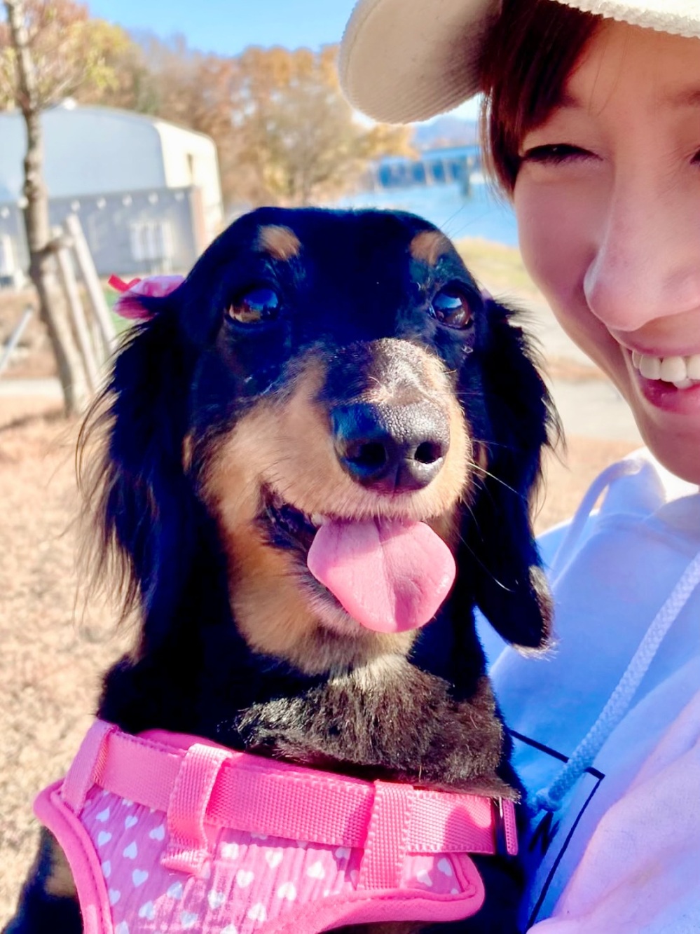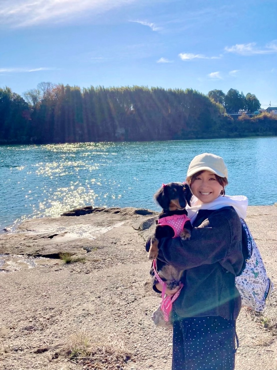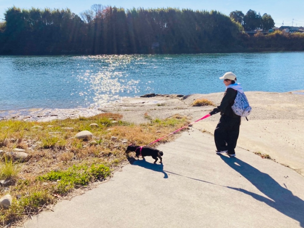 普段は散歩中、タラタラ歩いているキズナですが、この日ばかりは、ぐいぐい引っ張られながら散策。疲れたら、リバーデッキでまったり。癒されました〜!キズナも笑顔。ありがとうのチューもしてくれました。