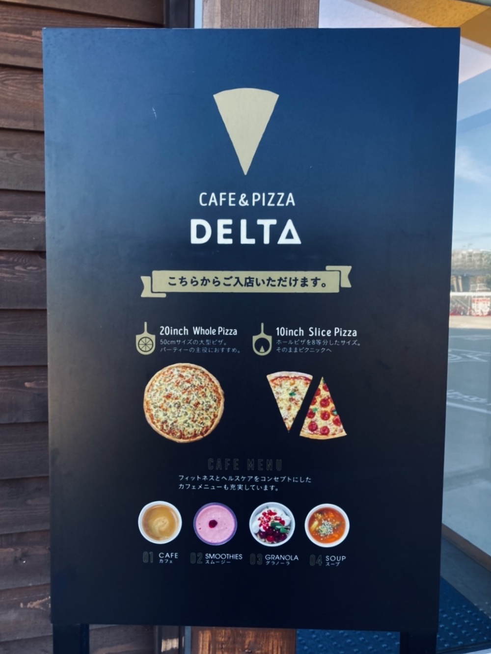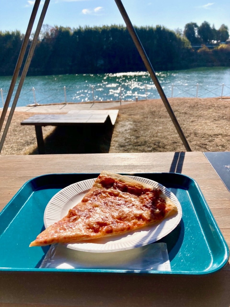 リバーデッキでくつろいでいると、ピザのいい香りが!ビジターハウスの一角にある「CAFÉ&PIZZA DELTA」では、50cmの「ニューヨークピザ」などが楽しめます。