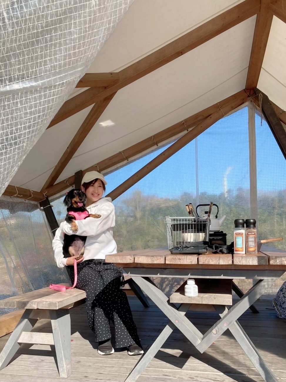 キズナも探検したり、お肉を狙ったり大忙し(笑)。開放的な空間で、みんなでワイワイ、ペットも一緒に楽しめるなんて最高!いい思い出ができました。