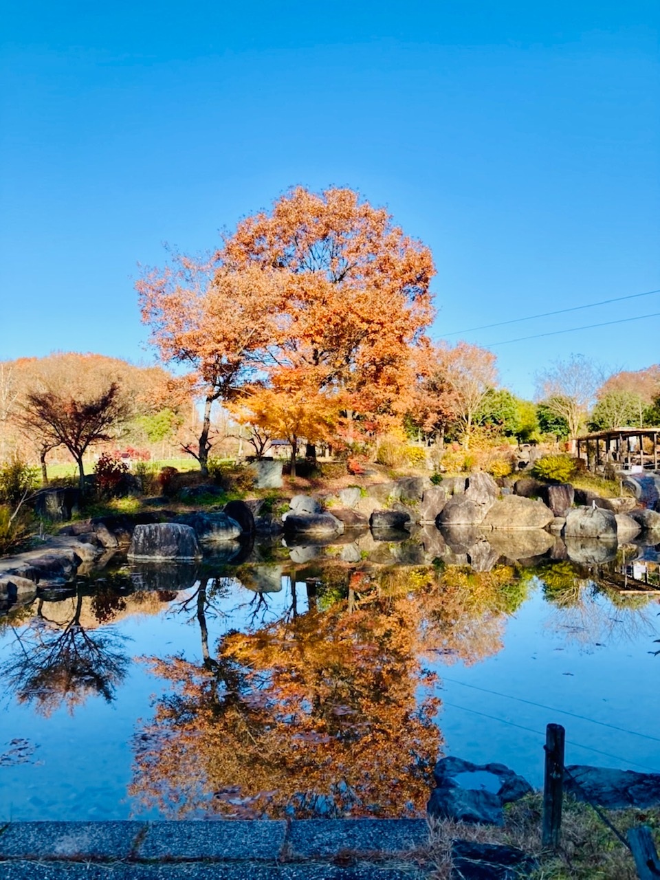 自然豊かな「ぎふ清流里山公園」では、四季折々、素敵な景色に出会えます。この日はじゃぶじゃぶ池に映った紅葉がとっても綺麗でした。