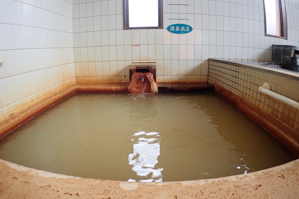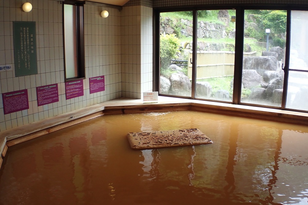 - 温泉は、ほんのり甘い味のするお湯。緑褐色や赤褐色など、訪れるたびに色も少し変わります。