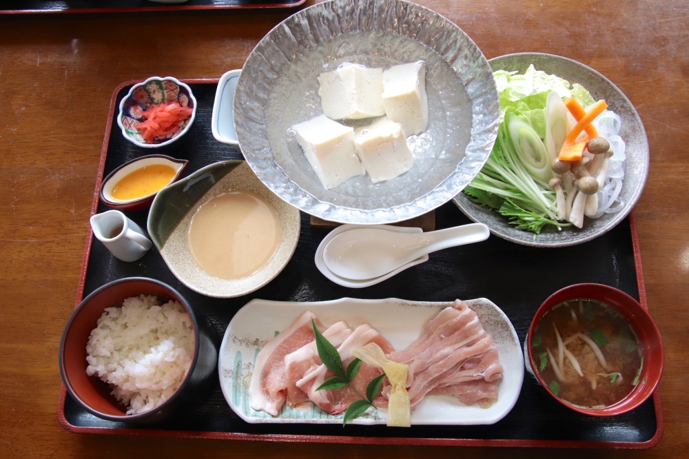 また、しゃぶしゃぶと一緒に鉱泉でいただく湯豆腐は、豆腐が溶け出し、とろ〜り食感の絶品。最後は食材の旨味がしみた鉱泉に、ご飯を投入して〆の雑炊をいただきましょう。