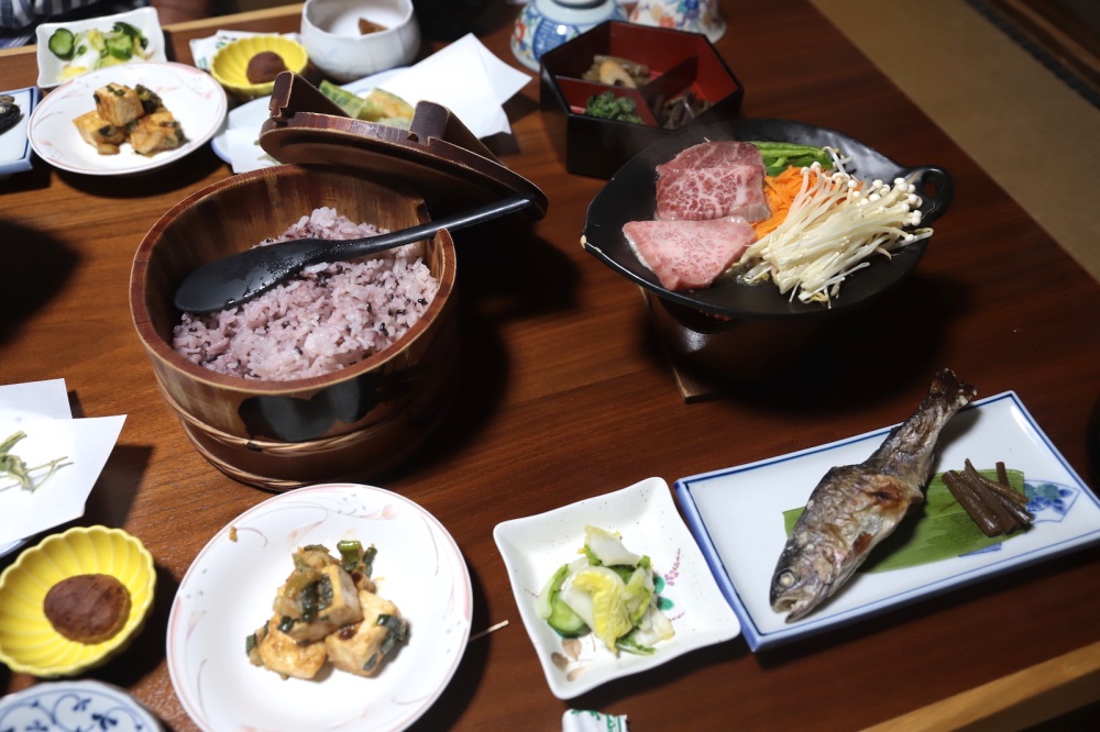 とてもリーズナブルながら、飛騨牛をはじめとして85%以上が地元産の食材を使用しており、ボリューム満点の郷土料理が楽しめるのも魅力です。地元の美味しいものをお腹いっぱい食べてもらいたいという、おもてなしが伝わってきます。