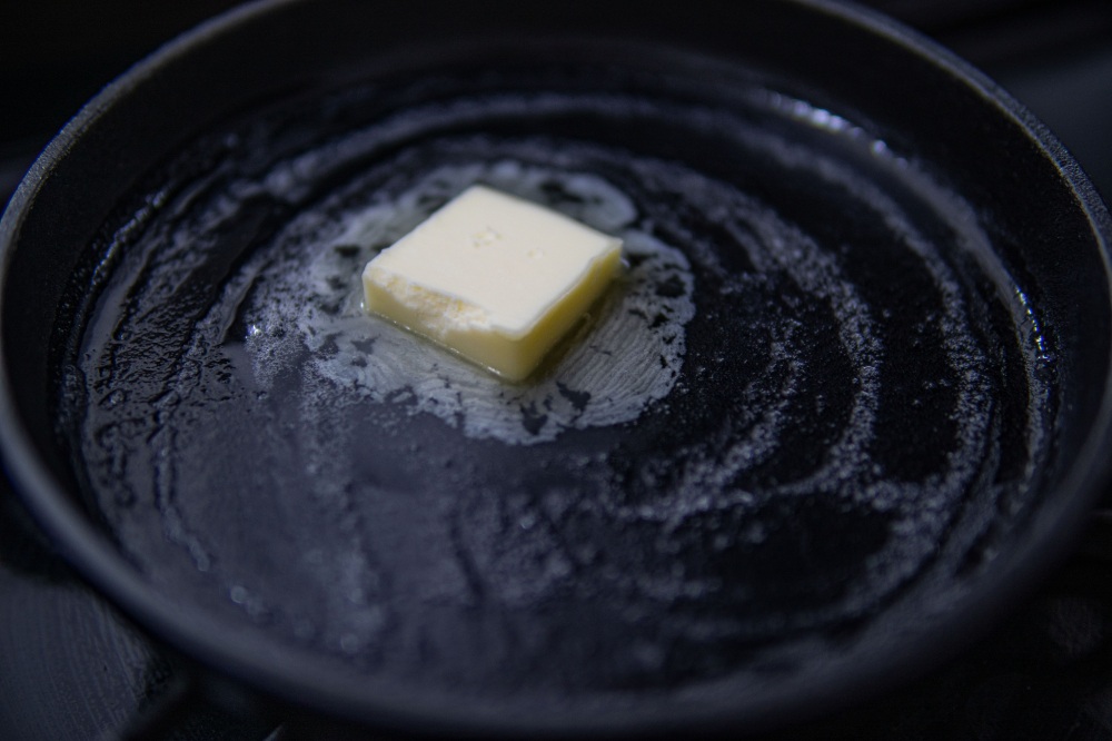 1.フライパンにバターをひく