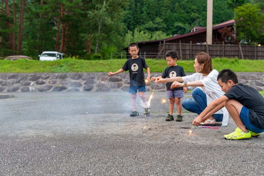 クワガタ探し、水遊び、レンタルキックボード&マウンテンバイク、アスレチック、花火など、色々な遊びがあります。