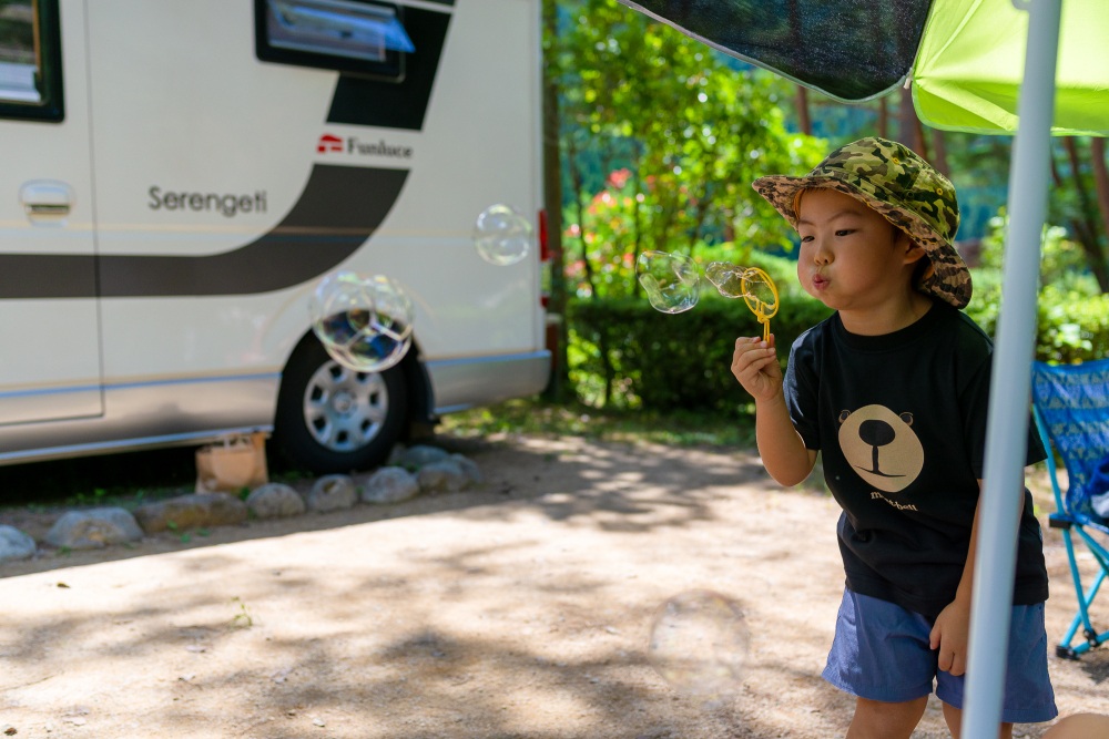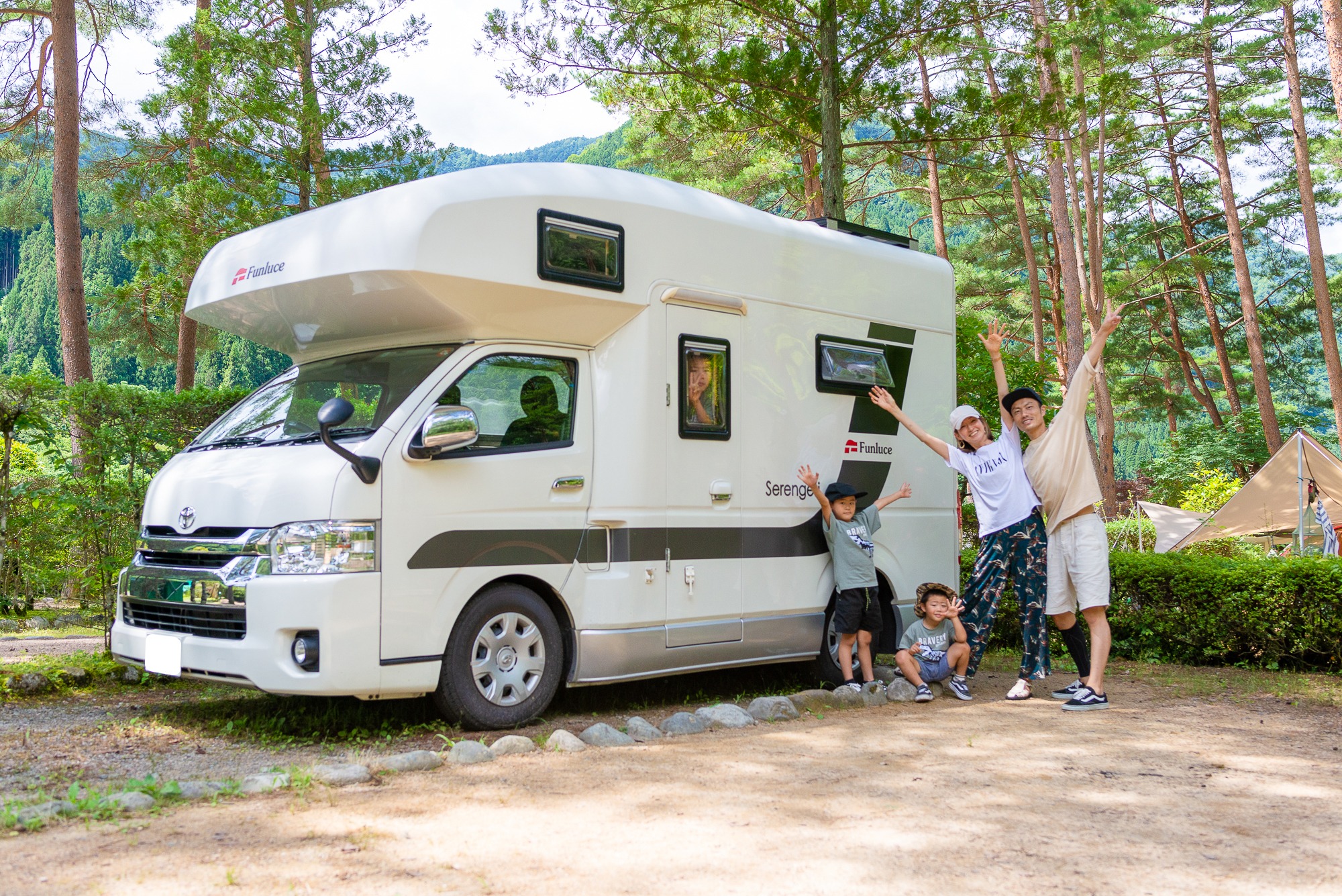 「奥飛騨温泉郷オートキャンプ場」でレンタルキャンピングカーの親子旅