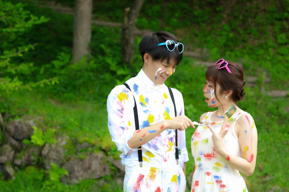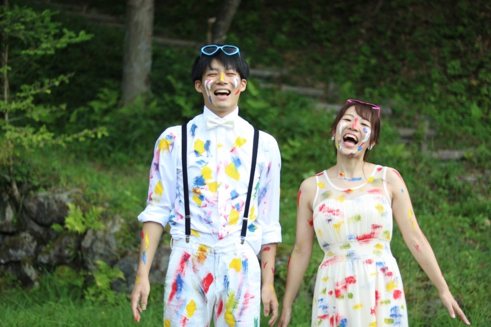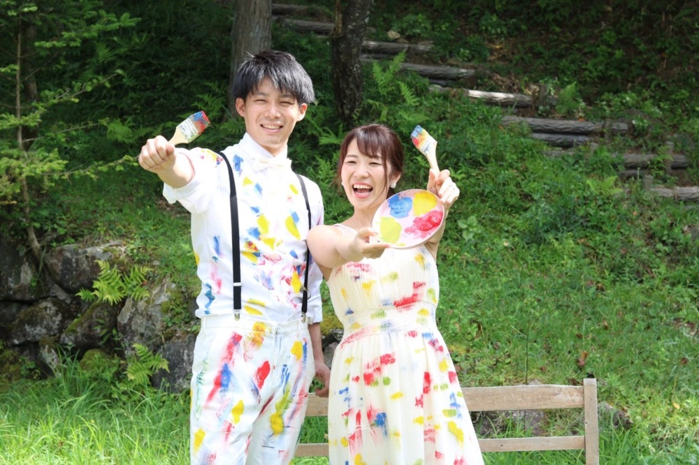 自然の中でのびのびと、自分たちをペイントして、個性的で楽しい思い出に残るウエディングフォトを撮影してきました。