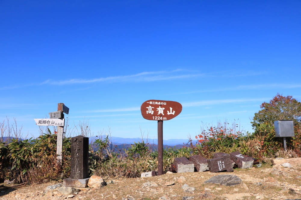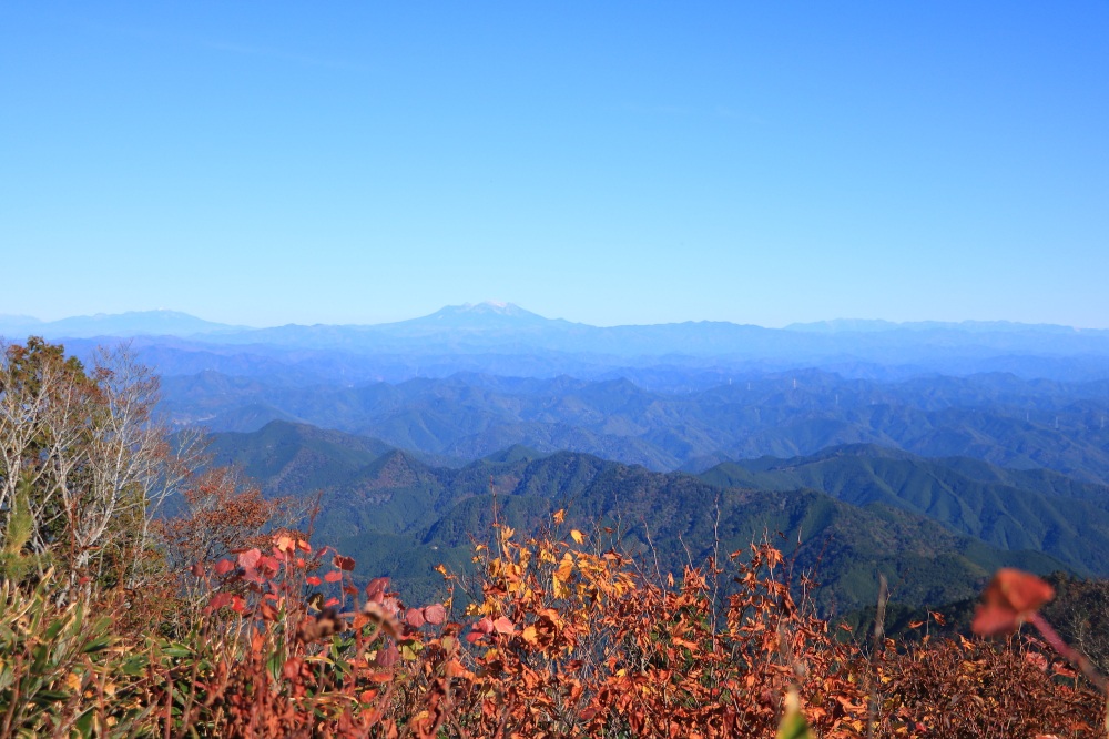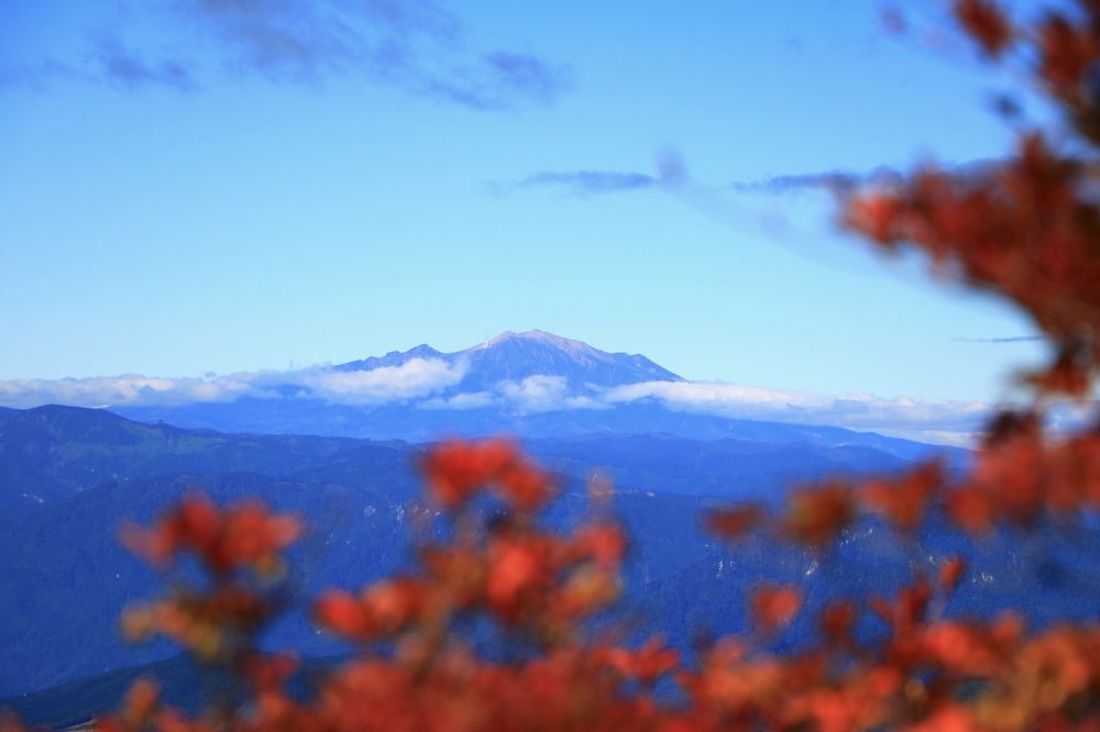 山頂は360度の大展望。御嶽山(おんたけさん、標高3,067m)や白山(はくさん、標高2,702m)といった、日本屈指の高峰を望むことができます。手頃な里山でありながら、しっかりと紅葉や山岳絶景を味わえる名山と言えるでしょう。