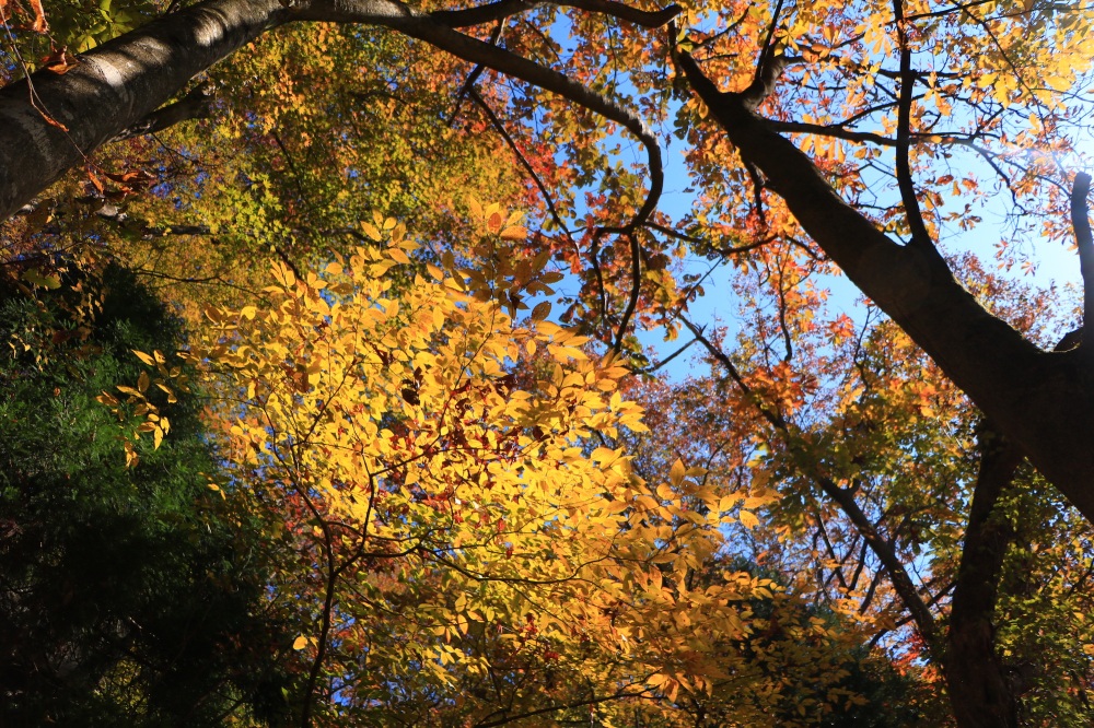 まるで別世界に足を踏み入れたような、筆舌に尽くし難い美しい大紅葉。辺り一面、オレンジと赤色で満たされる景色は圧巻です。また雲の具合で表情を刻々と変え、どこかメルヘンチックな雰囲気も醸し出しています。