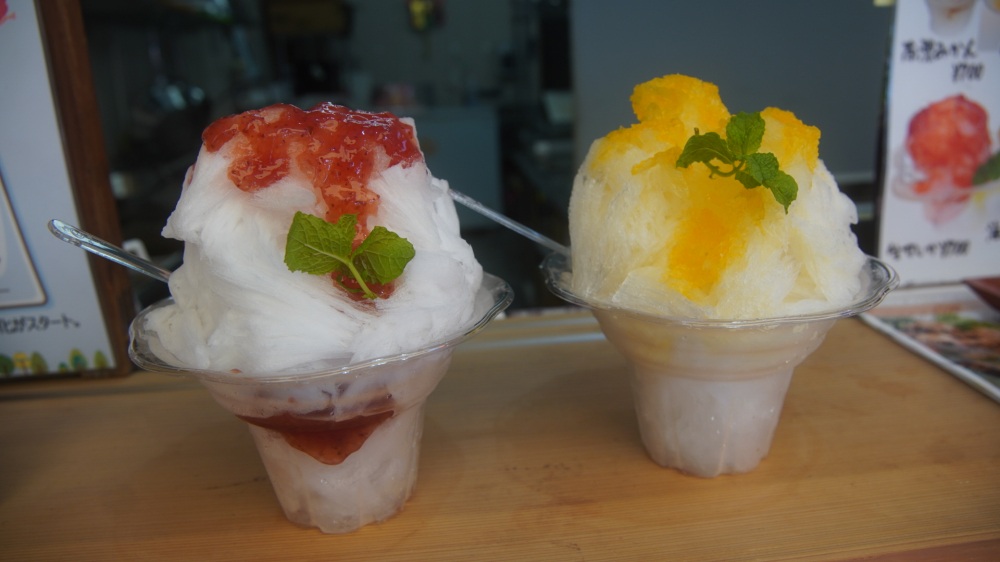 海津市は「南濃みかん」が有名。そのみかん果汁に鶏肉を漬け込んで作る「美濃からあげ」に惹かれて立ち寄ったお店に、手作りシロップのかき氷がありました。