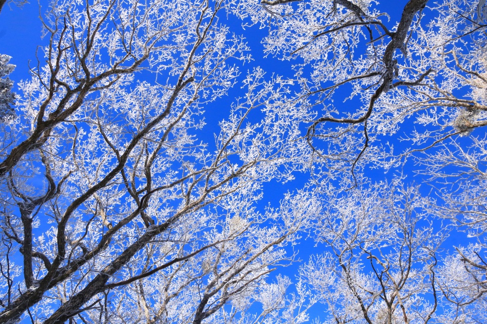 限られた気候条件でしか見られない冬山の風物詩ですが、枯れた木がさながら満開の桜となって咲き誇っているような姿は、一度見ると忘れられない美しさです。