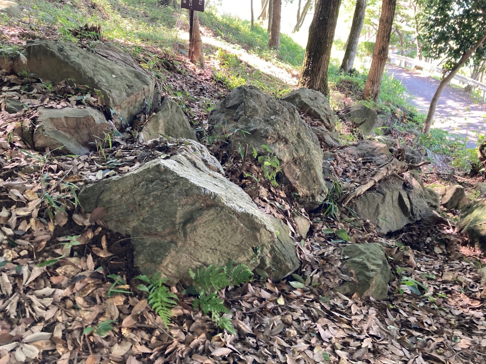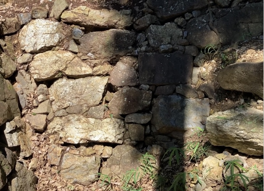 また、石垣の角は強度を増すために長方形の石を交互に積む「算木積み(さんぎづみ)」にし、天端(てっぺん)に大きめの石を積んで、上からと横からの圧で石垣を保ち、そのギリギリの所に建物を建てられるようにしています。裏を返せば、上と角さえ落とせば石垣はもろくなり、使えなくなってしまうということで、破城された美濃金山城の石垣は、天端と角が壊されていました。そんな破城の跡を、400年以上経った今でも見ることができるなんて!鳥肌モノですよ〜。