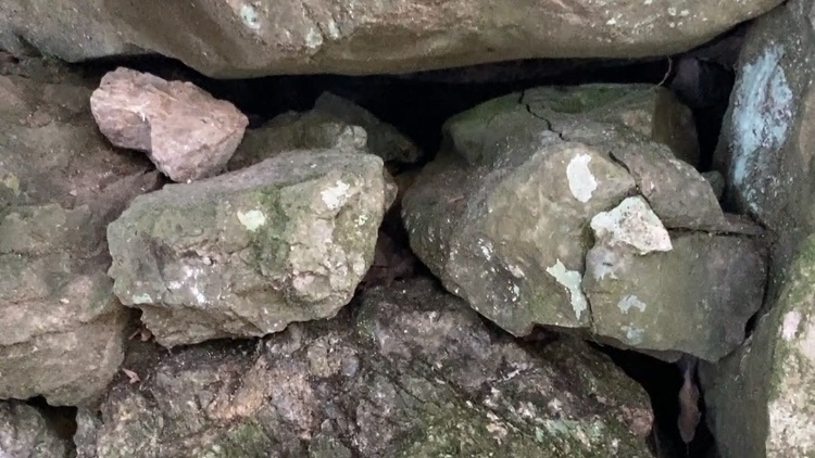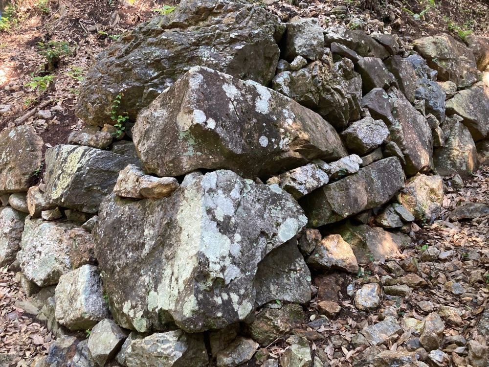 城を故意に壊し再び城が築かれないようにする「破城(はじょう)」の跡が、多くの場所に見られる美濃金山城。一歩を足を踏み入れると、破城によって崩された石があちこちに、ゴロゴロと転がっていてビックリ。全ての石垣は、自然石を加工せずに積む「野面積み(のづらづみ)」と呼ばれる積み方で、石の間の隙間に間詰め石と呼ばれる小石を詰めることで、面を綺麗にすることはもちろん、平らな面にすることで敵が簡単に登れなくなる工夫が施されています。