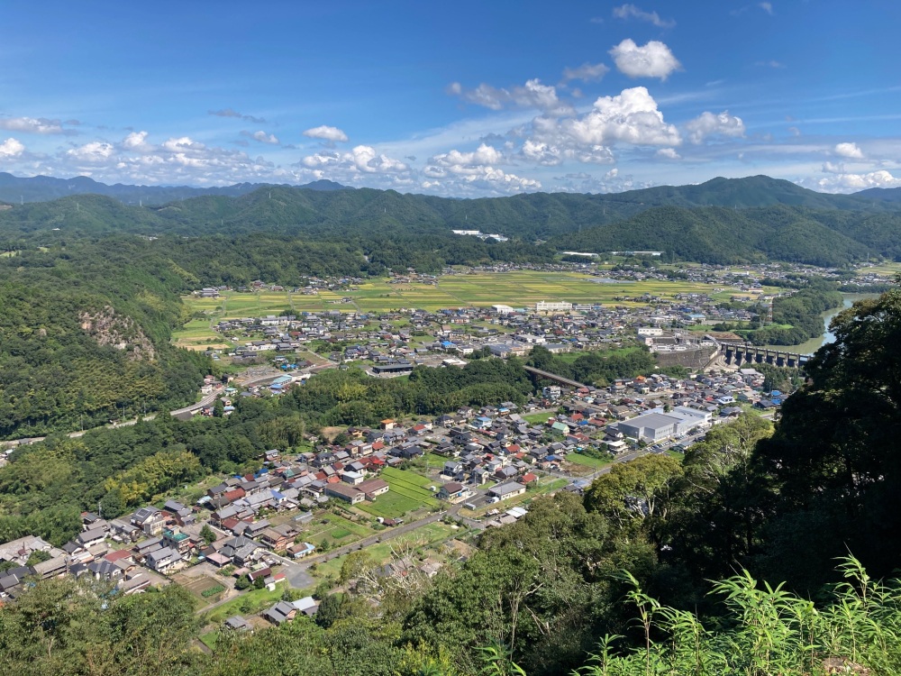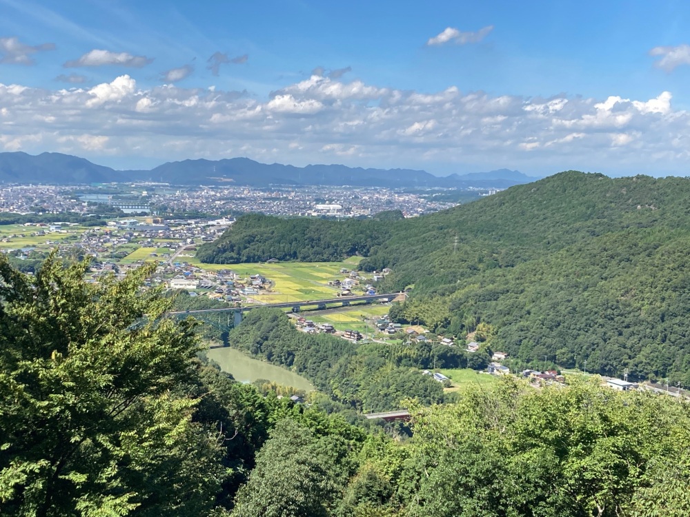 - 標高約276メートルの古城山の山頂から一望できる景色は必見です。木曽川に架かる赤い橋のあたりに、かつて、兼山湊という河港があり、多くの舟が往来し栄えていました。