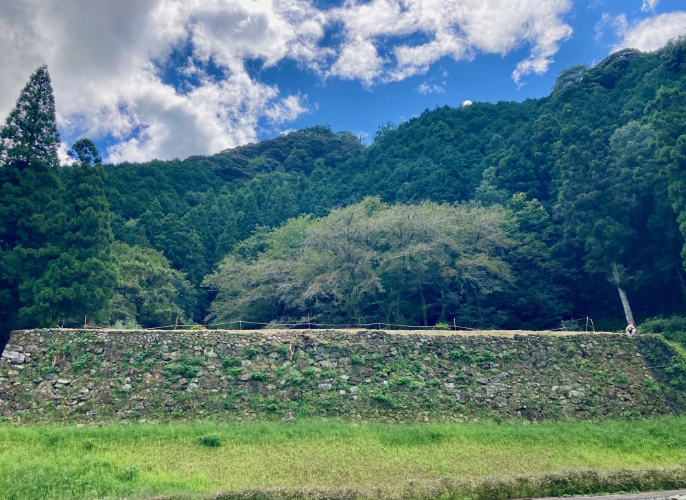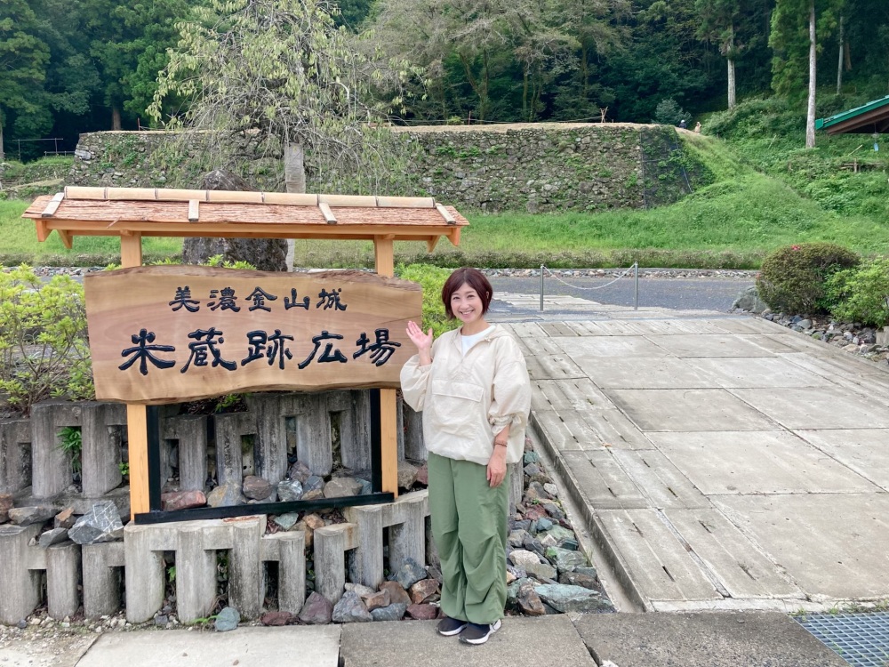 そのほか、美濃金山城のふもとにある米蔵跡の、高さ5m〜7m、長さ40mある野面積みの立派な石垣も見応えありです!実は、正面の土地が荒れ果てて、景観が悪くなっていたそうですが、近年の山城ブームで県内外から多くの方が訪れる中、保全して住民や観光客に親しまれる遺跡にしようと、有志団体が立ち上がり、このような美しい広場になったそうです。そんな地域の皆さんの思いにも感動しました。ぜひ、皆さんも訪れてみてください。