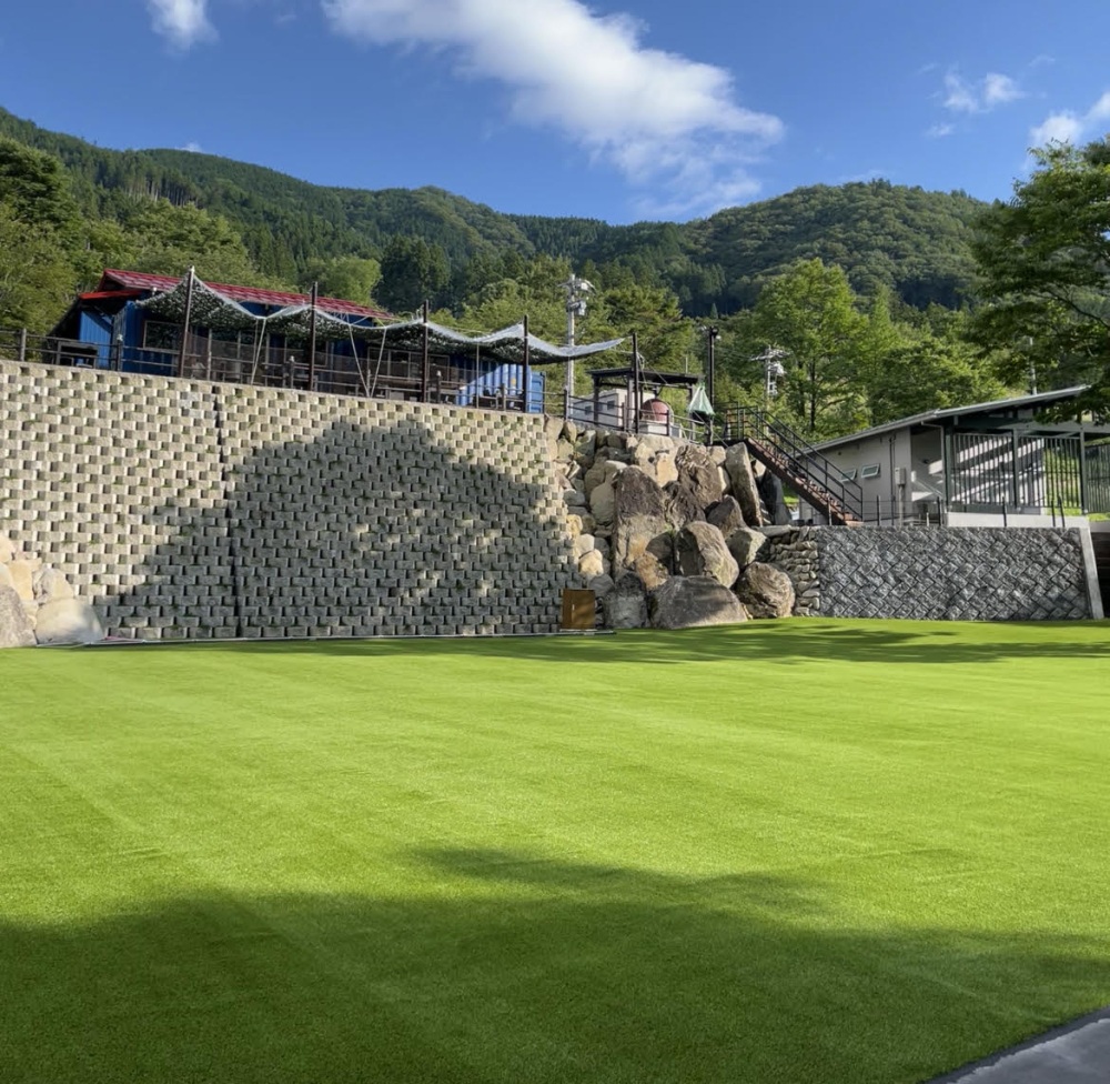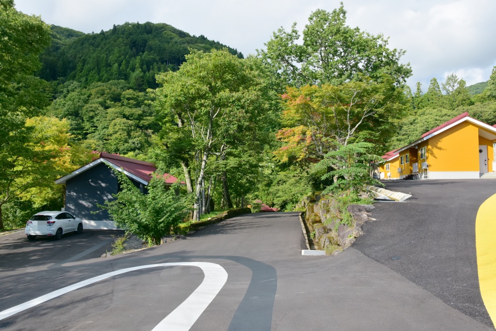 山の中腹に作られた施設内にはコテージが9棟あり、その他に、センターハウスや芝生広場、キッズパークなど様々な施設が集まっています。2022年7月15日にオープンしたばかりですが、さっそく県内は元より遠方から仲間や家族を連れて滞在を楽しむ方で賑わう施設になっています。