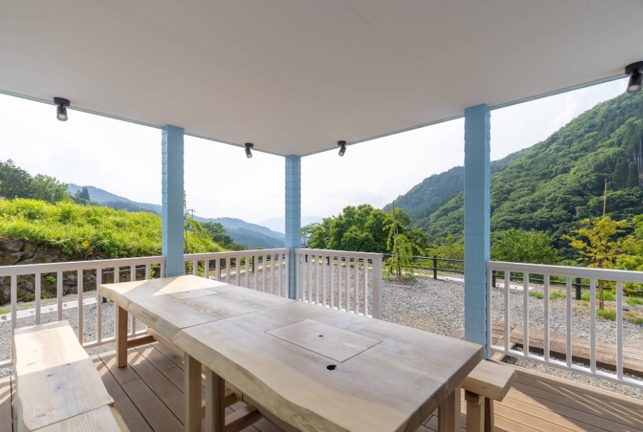 BBQ用の七輪がついたデッキも付いているので、外の空気を吸いながら持参した食材でBBQを楽しむことができます。食材は郡上近辺のスーパーで調達するのがおすすめ。地元の野菜や飛騨牛、ハムやソーセージなどをゲットしてその土地の味覚を味わってみてください!