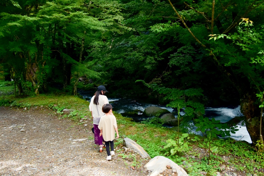 施設内には自然がいっぱいで虫取りや自然散策などもできます。四季折々の景観も素敵で、春には桜、夏には水遊び、秋には紅葉、冬は雪景色とシーズン毎の表情を楽しめます。