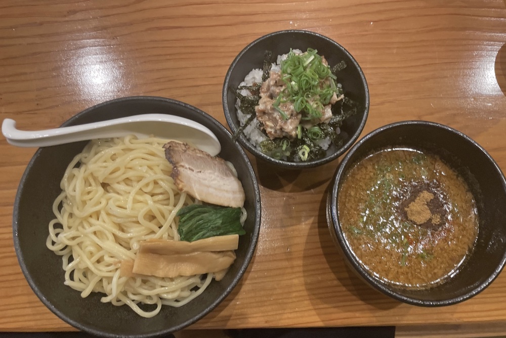 色々なラーメン屋さんがありますが、僕のおススメは「ながらぱいたん珀」のつけ麺。まず、お通しでいただけるもやしが本当においしく、おかわりしたくなります。