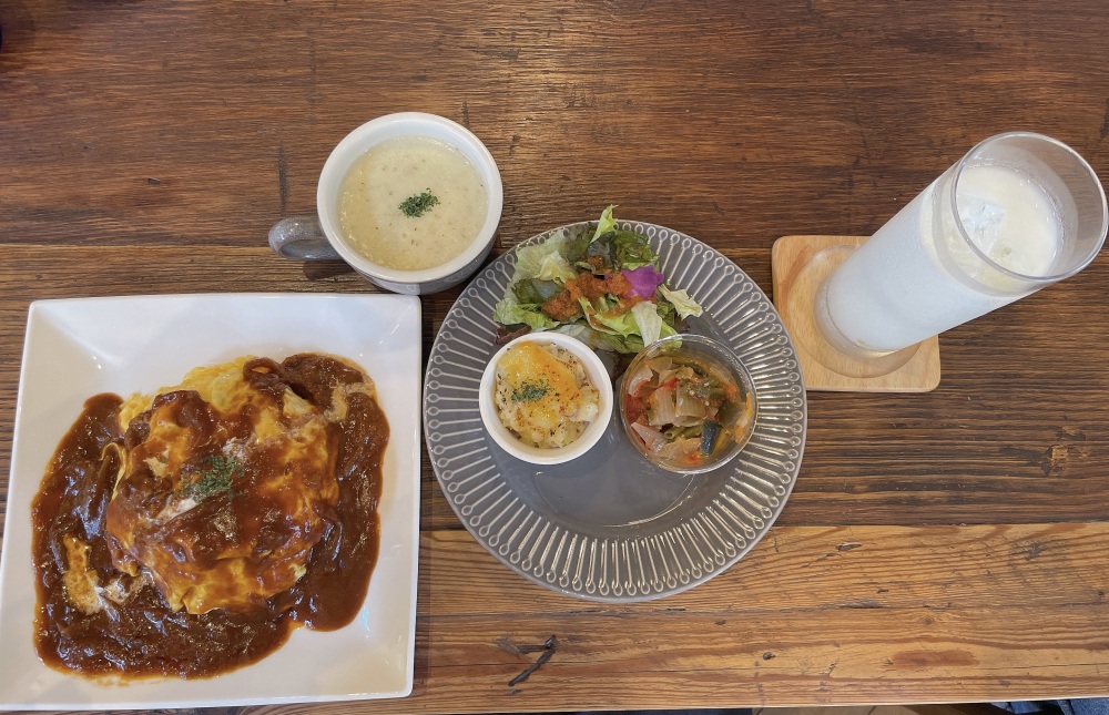 ランチメニューから選んだのは、オムライス。フワトロの玉子がかかっていて「絶対好きなやつ!」でした。ゆったりした雰囲気の中でいただくランチはとても贅沢で、時間が経つのも忘れて過ごすことができるお店です。