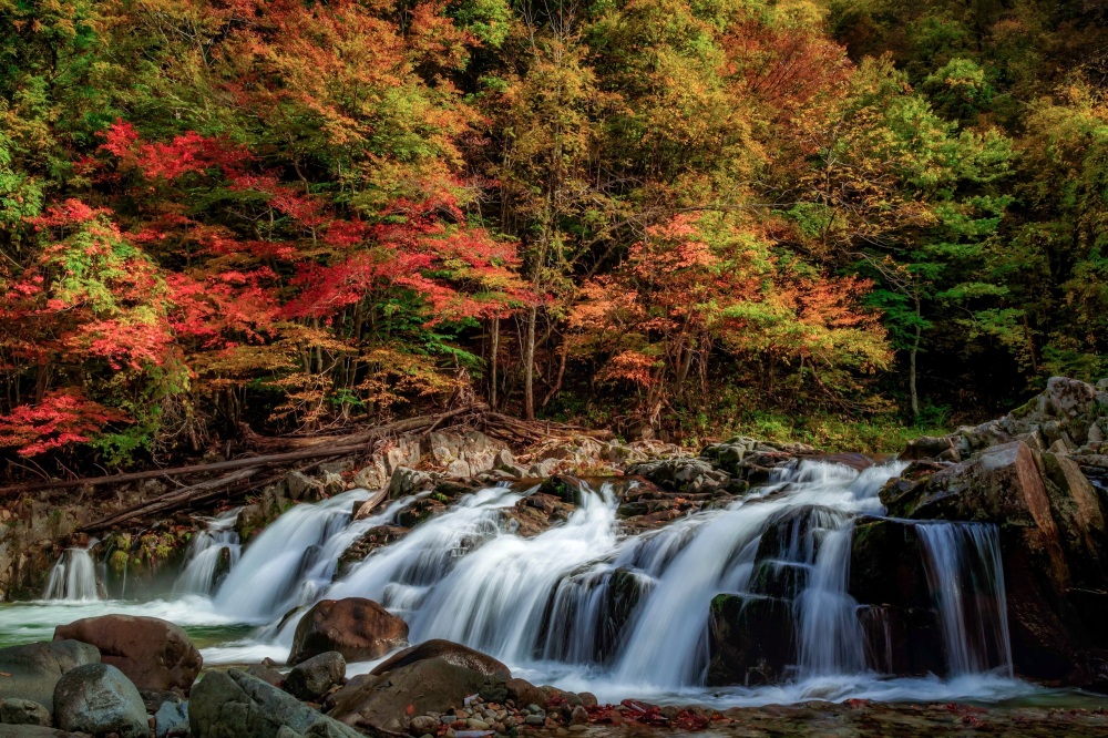 紅葉の名所「宇津江四十八滝県立自然公園」(高山市)