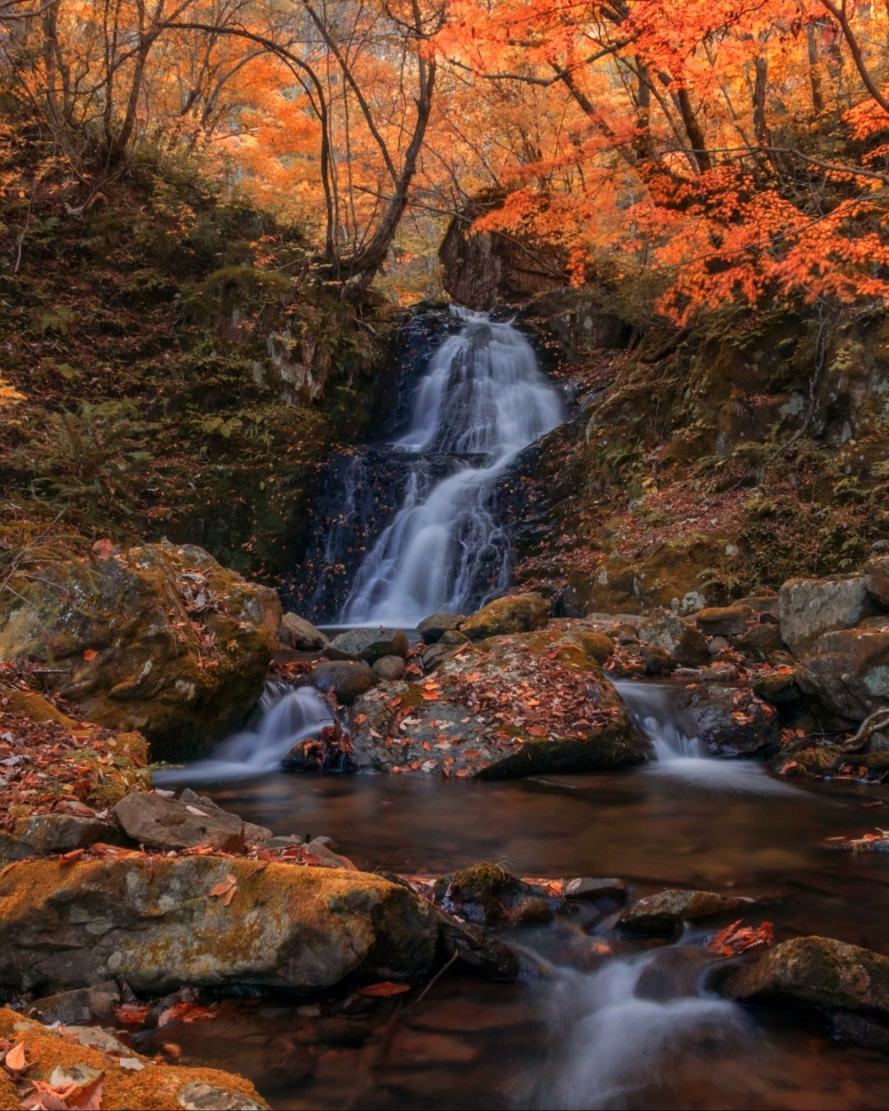 秋には、錦色に染まった木々と滝がコラボレーションした絶景となります!せせらぎ街道沿いに駐車場が有り、駐車場からも滝を見ることができます。せせらぎ街道沿いには他にも「大倉滝」や「西ウレ峠」など有名な紅葉スポットがあるので、一緒に回ってみてはいかがでしょうか?