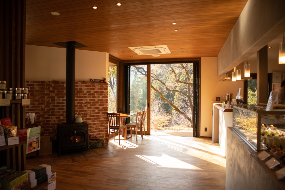 店内にはカフェスペースがあり、窓からは下呂の街並みを眺めることができます(テイクアウト可)。