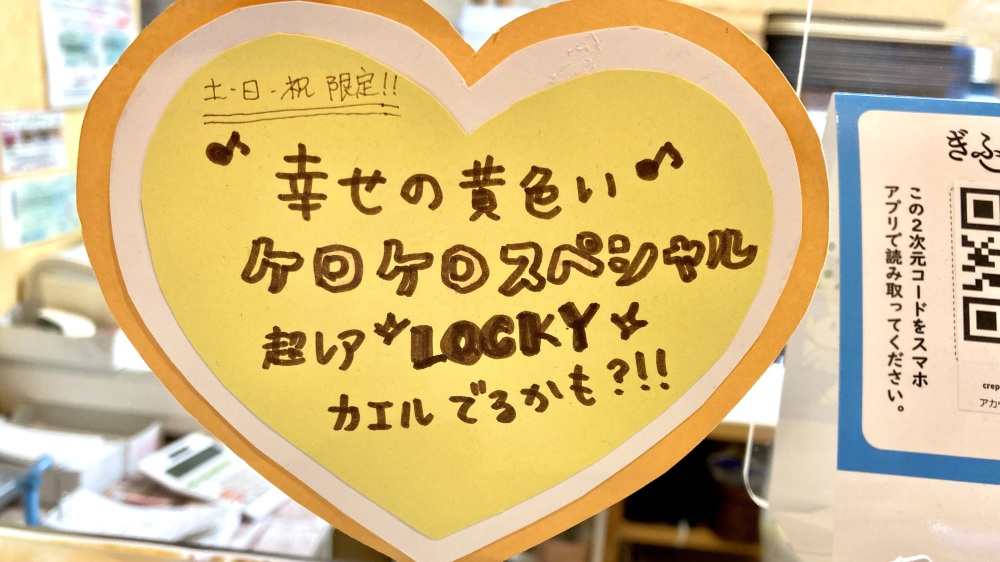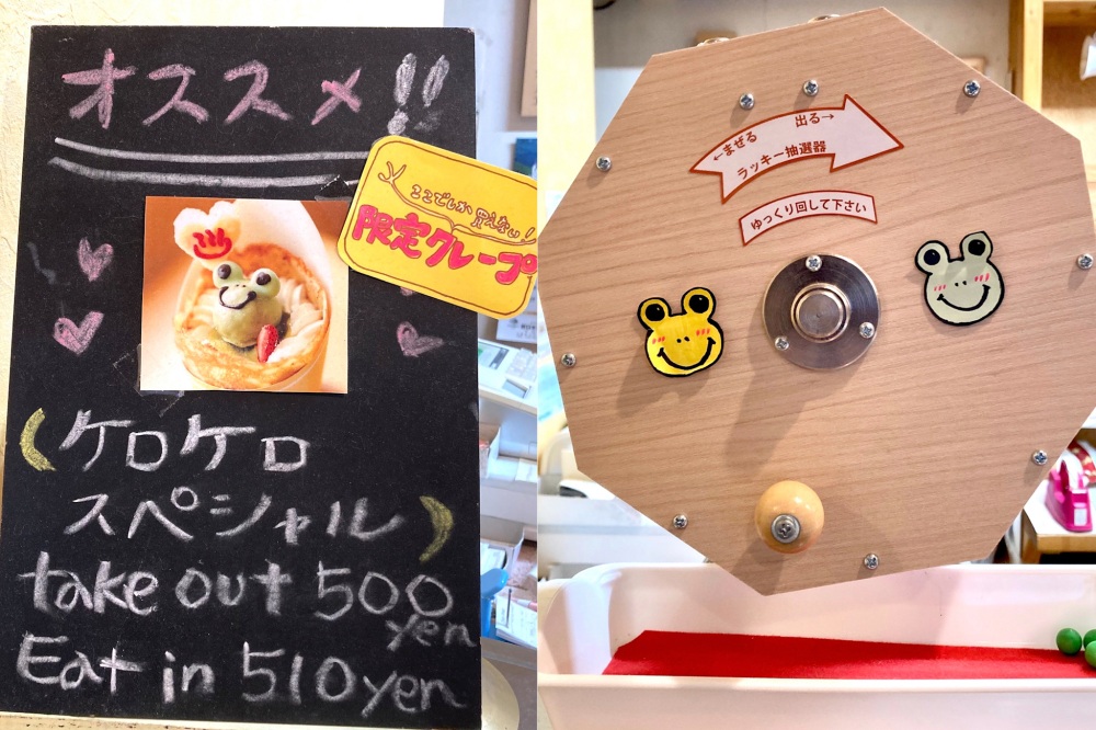 (「ケロケロスペシャル」は、購入時にくじを引いてトッピングのカエルの色が決まるという遊び心ある一品です)