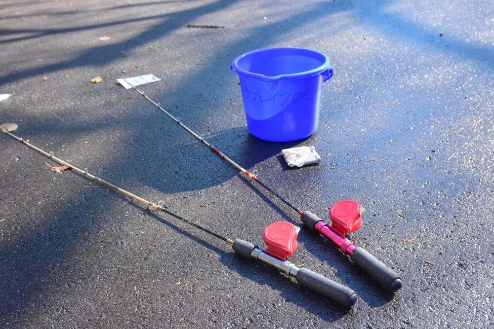 道具は全てレンタルOK。ワカサギ釣りの料金(800円)の他に、仕掛け付きの竿(1,000円)、餌の赤虫(300円)、釣り用バケツなどが用意されているので、手ぶらで行っても大丈夫です。