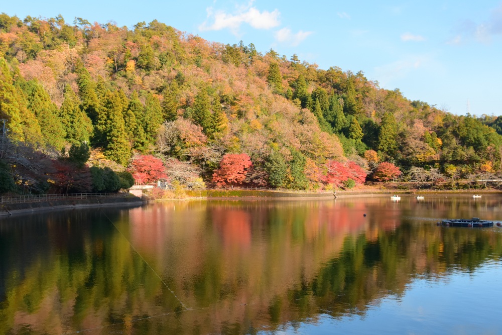 伊自良湖は春は桜並木、夏は涼、秋は美しい紅葉、 冬はワカサギ釣りと四季折々の景色を楽しむことができるスポットでもあります。湖の周辺には遊歩道が整備されているので紅葉や森の景色を楽しみながら歩くのもおすすめです。