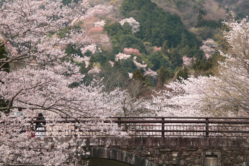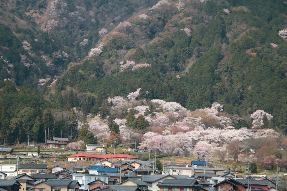 のどかな田園地帯が広がる大垣郊外。中でも春には池田山の山麓・霞ヶ間渓(かまがたに)に山桜が咲き誇り、見事な山肌のパッチワークを見せてくれます。
