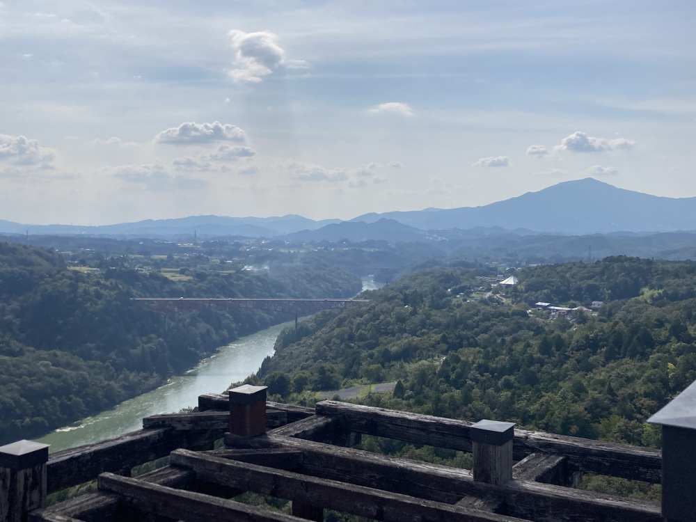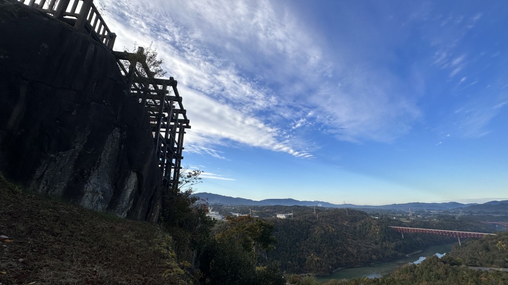 苗木城は、京都の清水寺と同じ「懸造」の城。かつての天守もこのような形で岩の上にせり出すように造られていたそうですが、「そんなところに建てて大丈夫なのかな?」と余計な心配をしてしまうくらい(笑)。ギリギリのところまでせり出しているのに、しっかりと組み上がっている柱から、先人の知恵と技術が見てとれます。また展望台からは恵那山や木曽川、市街地を360度見渡せる絶景が広がっていますよ〜。