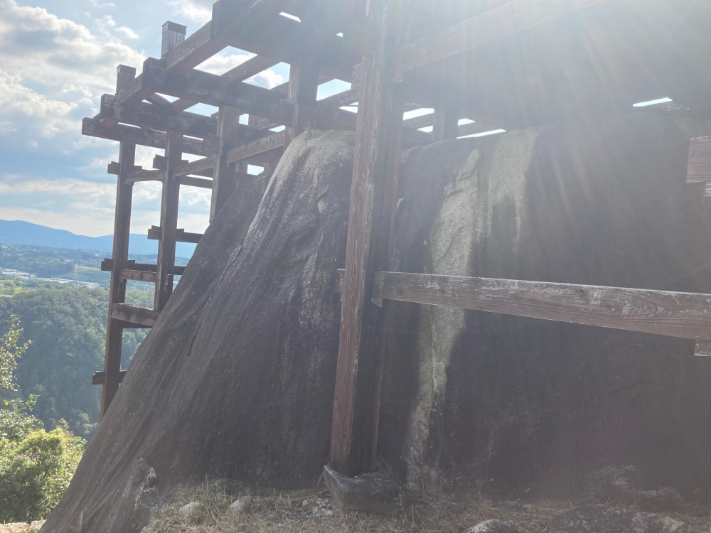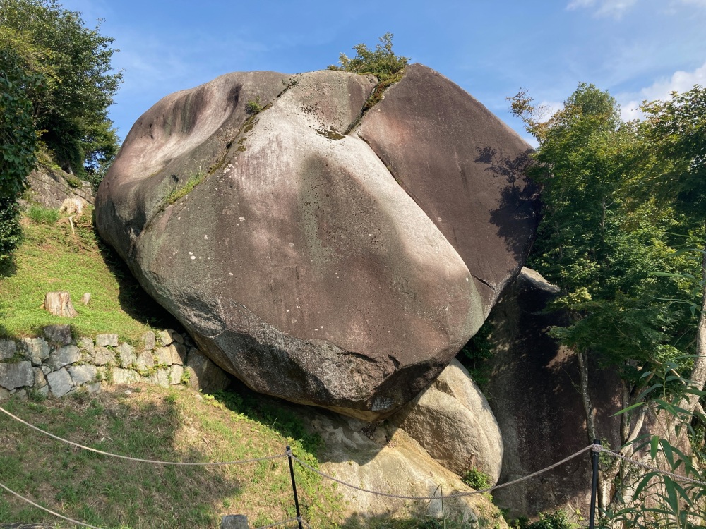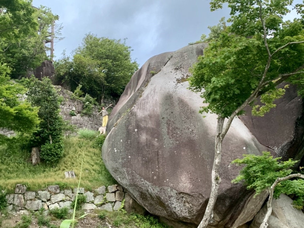 苗木城には巨石がたくさんありますが、なかでも天守台跡の南下にある「馬洗い岩」と呼ばれる岩が迫力満点!!めちゃくちゃ大きくて圧倒されます。ぜひ、横に並んで写真を撮ってみてください。