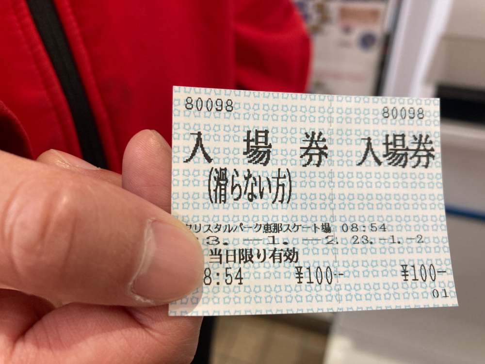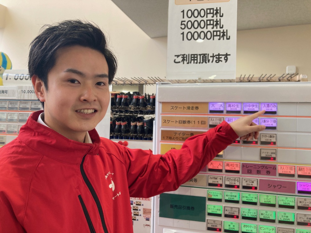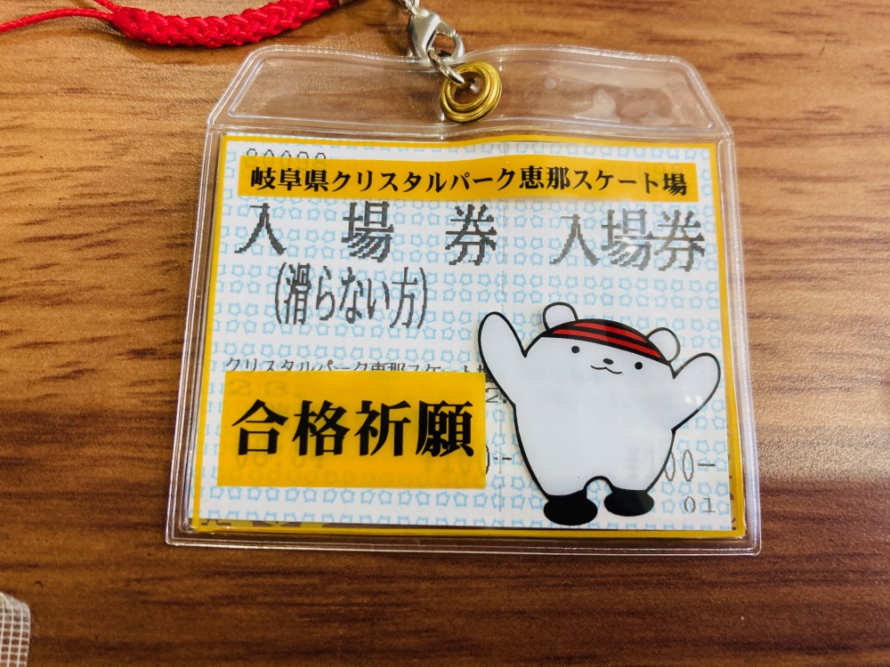 まずは券売機でチケットを購入。スケートは、滑走料1000円で1日、楽しむことができます。お値打ちですよね〜!また、滑らずに入場される方は、100円で「入場券」を購入できるのですが、なんとこの入場券、合格祈願のお守りになると受験生や保護者の方に大人気なんだそうです。滑らない券用の御守ケースも販売されていましたので、私も大好きなダジャレが滑らないようGETしました(笑)
