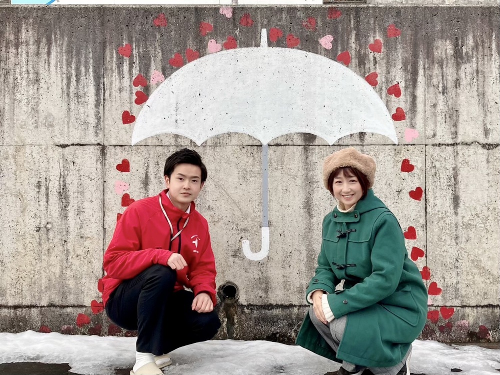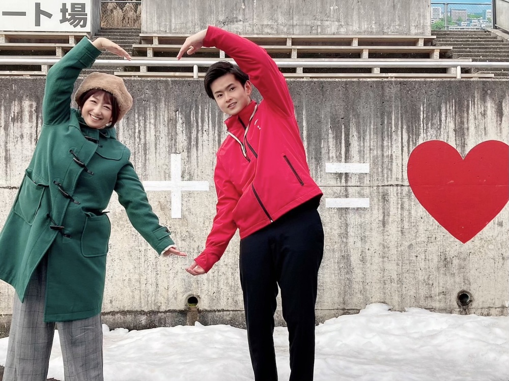 さらに、こちらの「ハートの壁」は、二人で撮影するとさらに楽しめる工夫がされていたので、私も水野さんとパチリ。