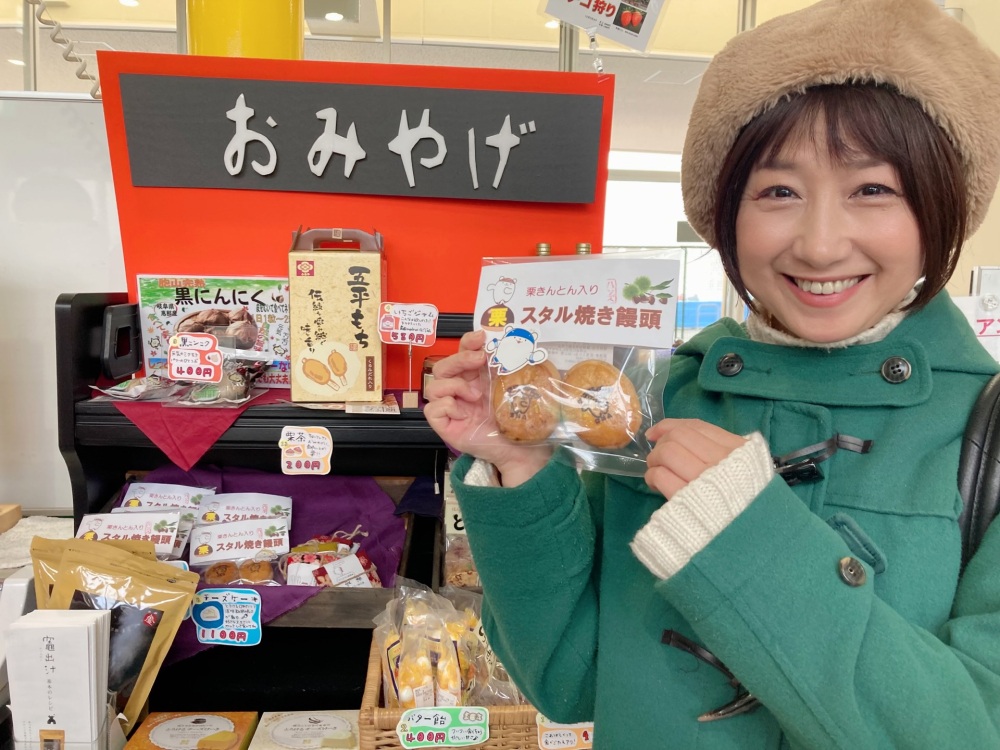 また、岐阜県クリスタルパーク恵那スケート場では、恵那のお土産も販売しています。特産品の五平餅や、キャラクター「クリス」にちなんだお菓子など、種類も豊富ですよ〜。ちなみに、私は水野さんオススメの「栗スタルまんじゅう」をお土産にしました。クリスの焼印入りで、なんと中に栗きんとんを入れてしまうという、栗だけに「クリ」エイティブなお饅頭。びっ栗するほどおいしいので、迷ったらぜひ、買ってクリ。
