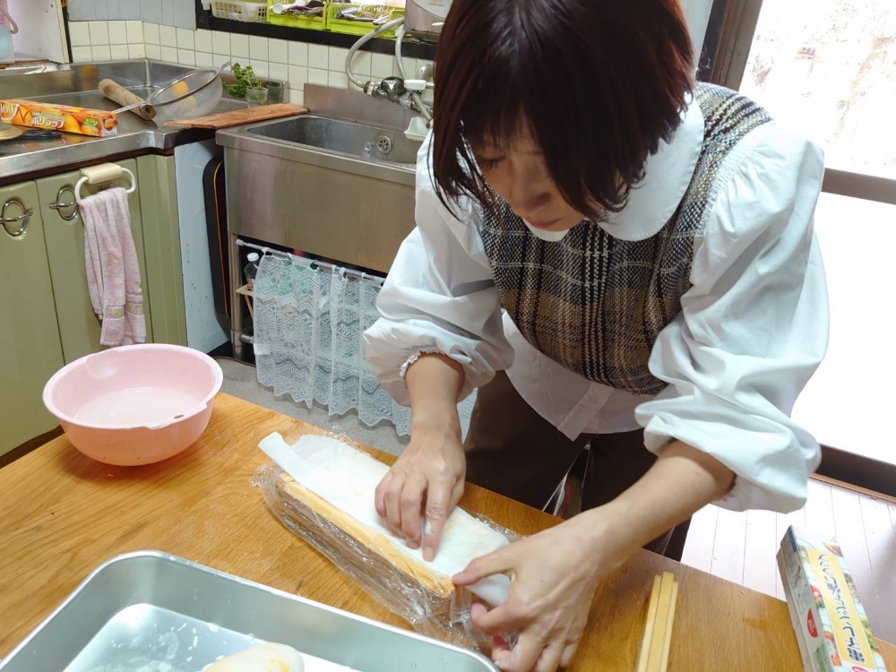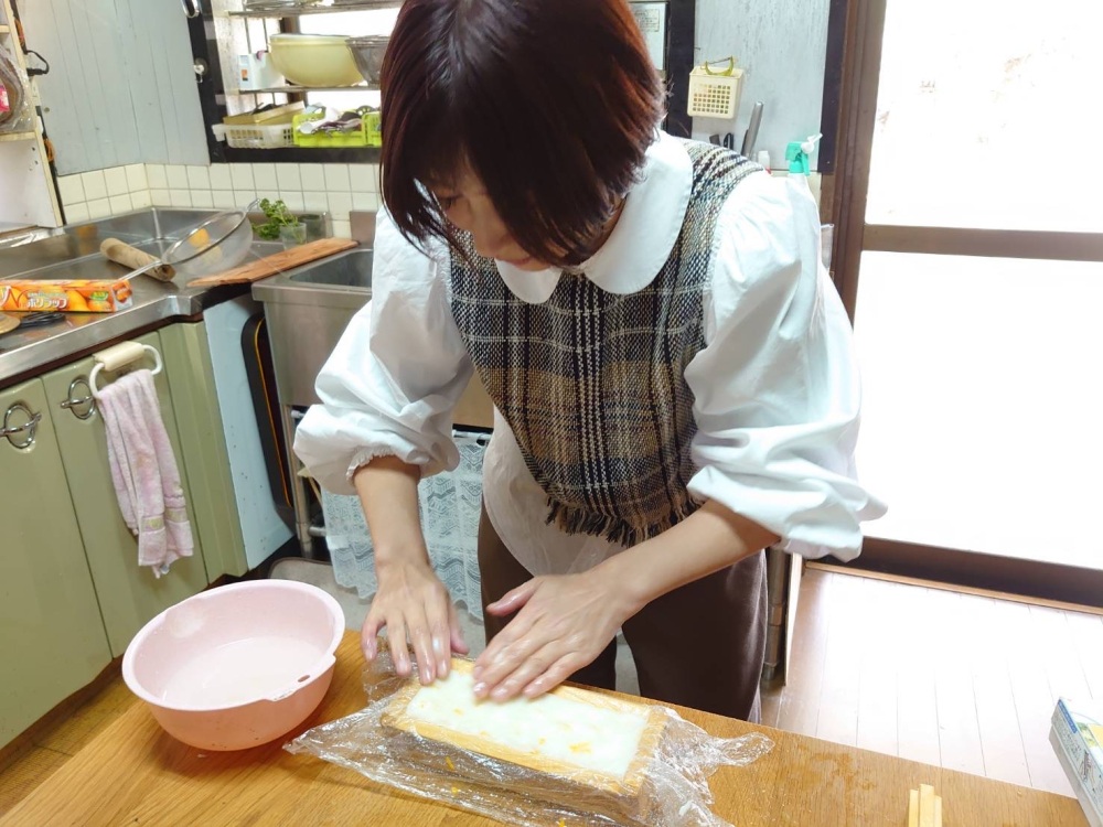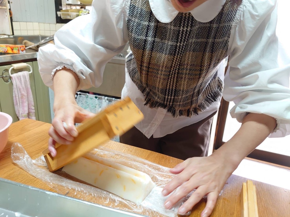 - 出来立ては柔らかいから、1日くらい置いてちょっと硬くなってから食べてもええし、時間が経てばどんどん硬くなっていくから、好きな柔らかさになったら冷凍庫に入れれば、その硬さで保存できるでね。楽しかったから、またからすみを作りたいって思ってもらえたら嬉しいね〜。