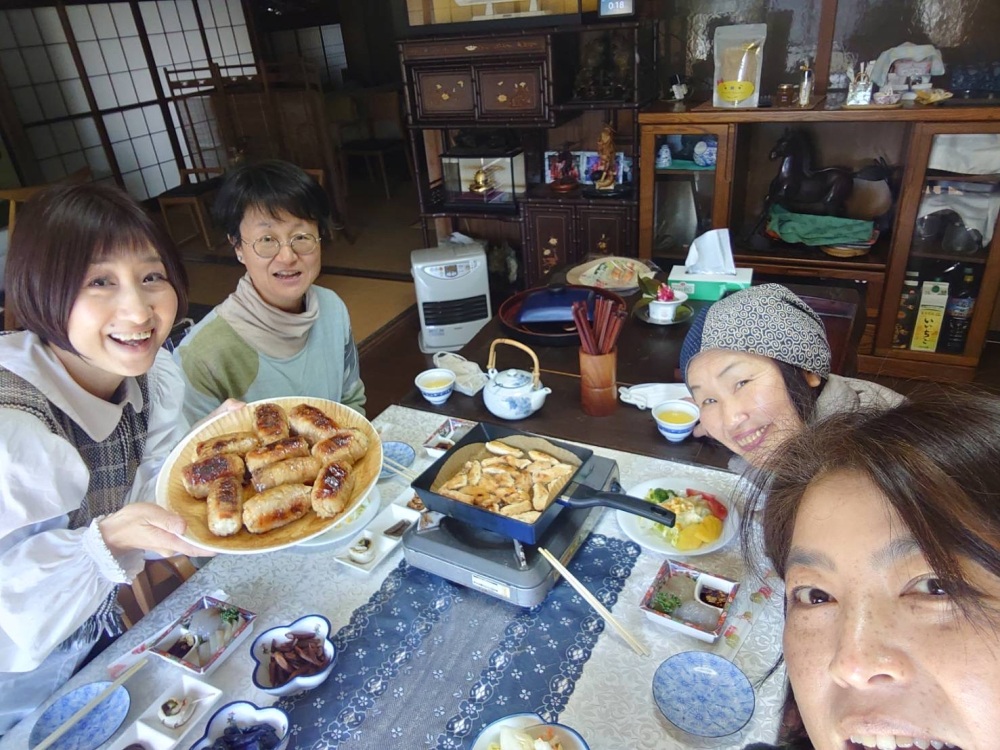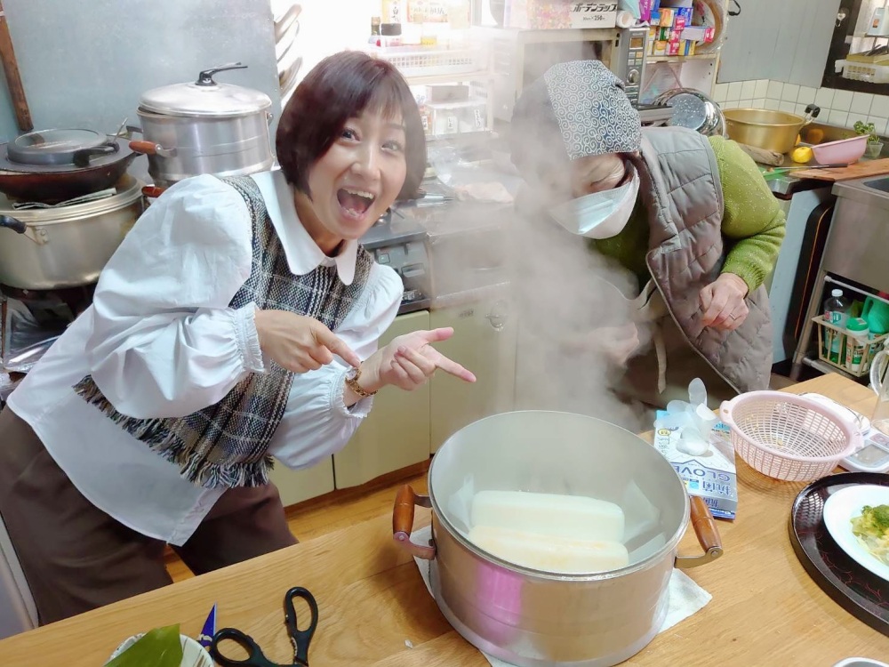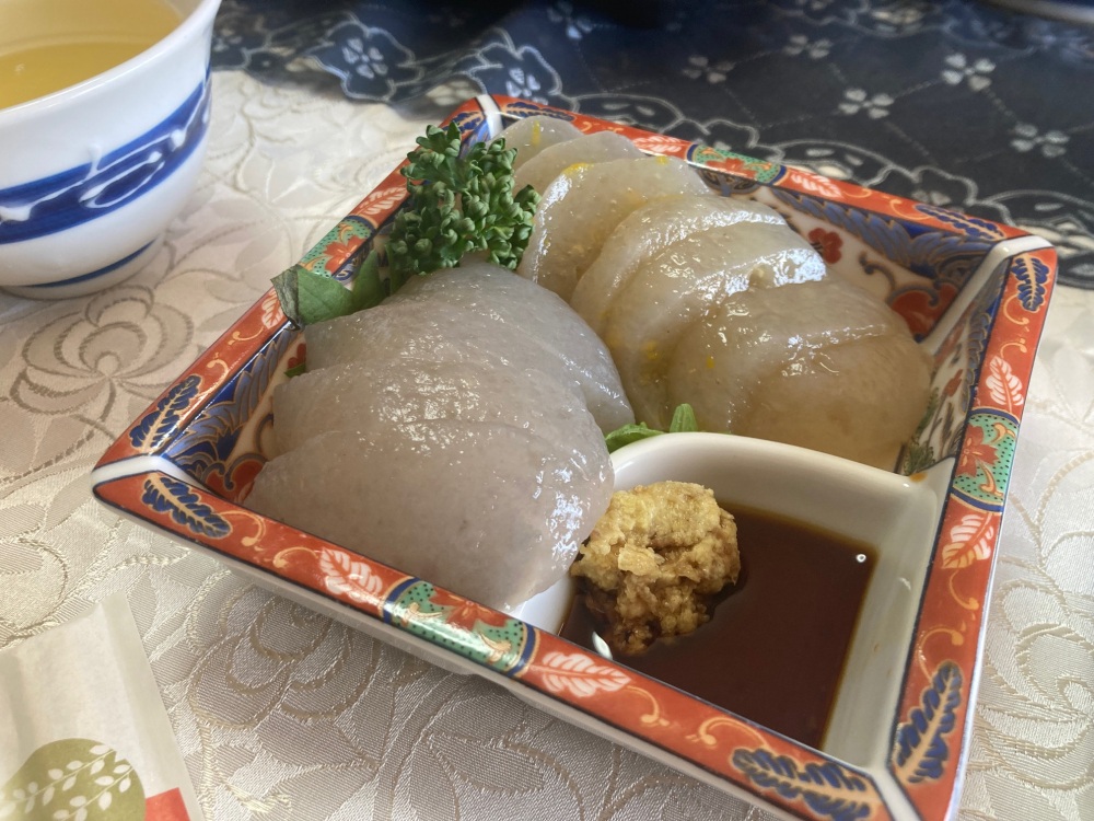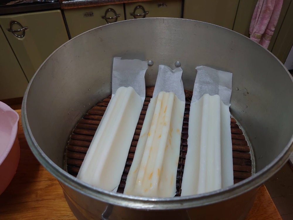 最後は形が出来上がった物を、蒸し器に投入。40分蒸したら完成です。待っている時間に、亀井さんが手作りのお料理を振る舞ってくださいました。せっかく来てくれるんだから喜んでもらいたい、その一心で作ってくださったんだとか。嬉しいですね〜!おいしい郷土料理をいただきながら楽しくお喋りをしている間に、からすみが完成〜!!!
