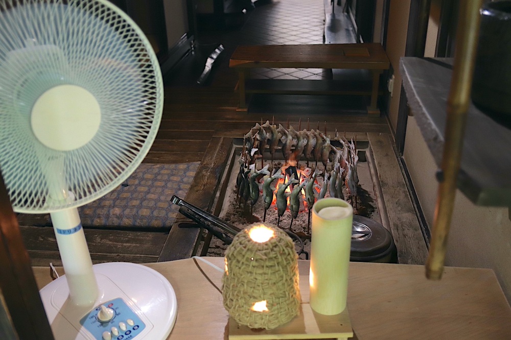 「何だか良い匂いがするぞ...!」と思って廊下を歩いてみたら、夕食のお魚を焼いているシーンに遭遇。