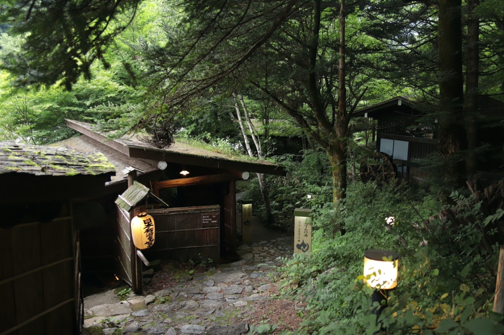 宿泊者のみ「ほたるの湯」「渓流の湯」「播隆の湯」「森の湯」という4つの貸切露天風呂を利用できます。