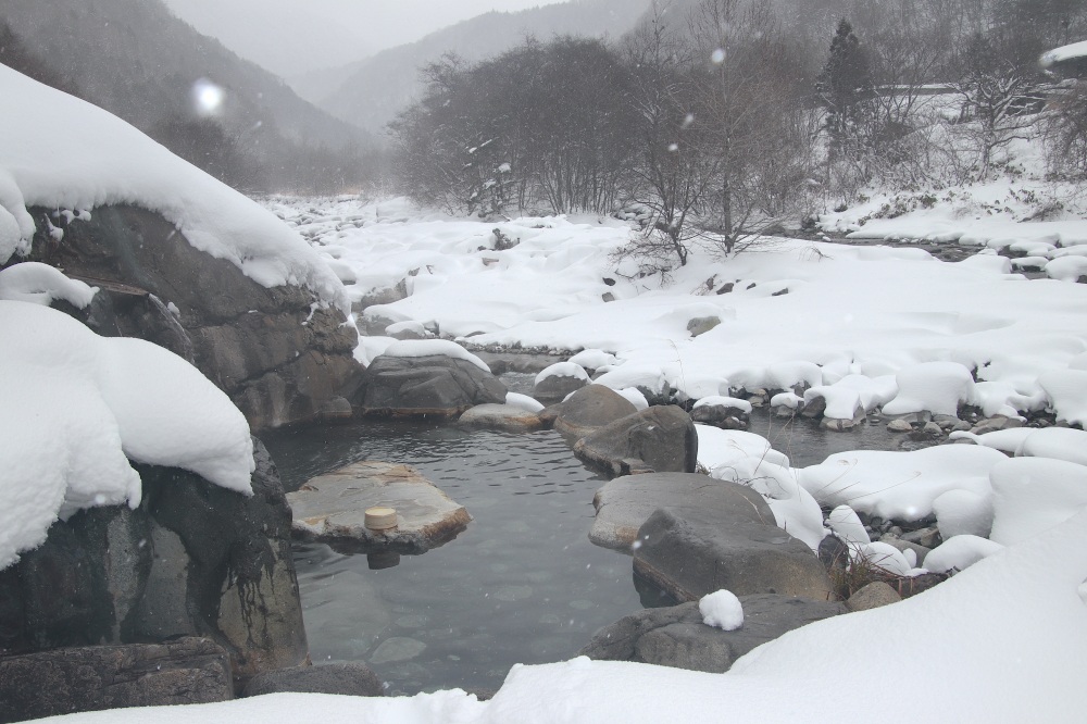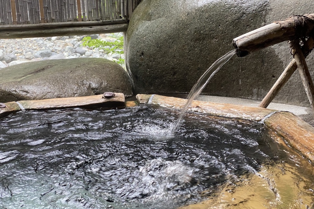 岩に隠れてゆっくり温泉に浸かるもよし、蒲田川の清流を眺めるのもよし。まるで奥飛騨の自然に身を委ねているような入浴が楽しめます。