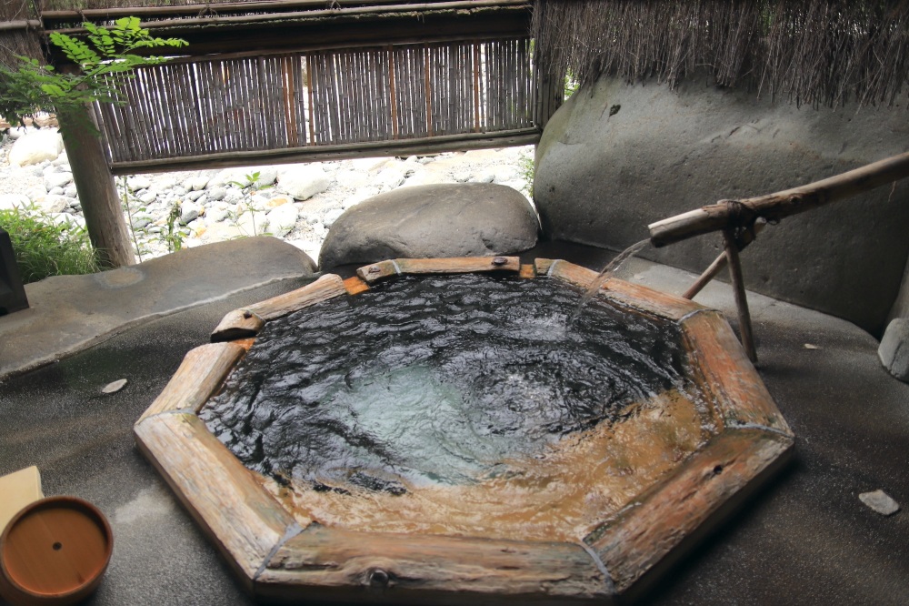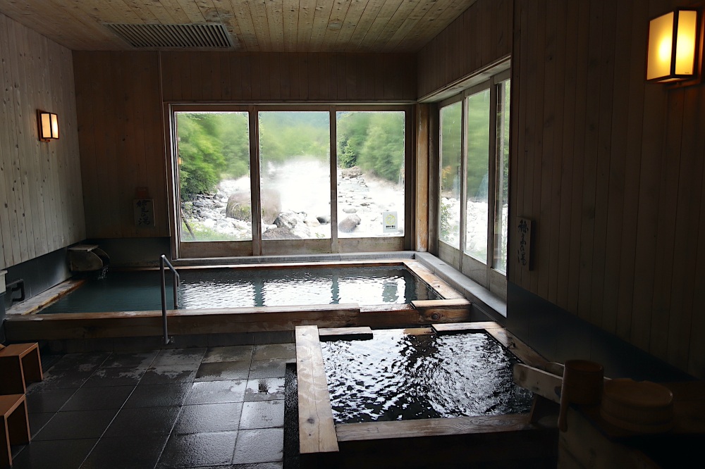 全て違う趣の浴槽となっていて、自然に溶け込むロケーションが抜群です。私のおすすめは「渓流の湯」。蒲田川を眺めるロケーションで、こぢんまりと設けられた木造の浴槽。まさに湯治に訪れているような風情を味わえます。