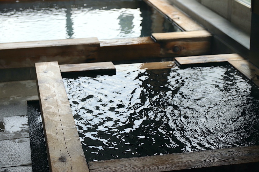 贅沢な露天風呂に加えて、男女別の大浴場も設けられています。シャンプー類はこちらに置かれているので、まず大浴場で身体を洗ってから、露天風呂を巡ると良いでしょう。