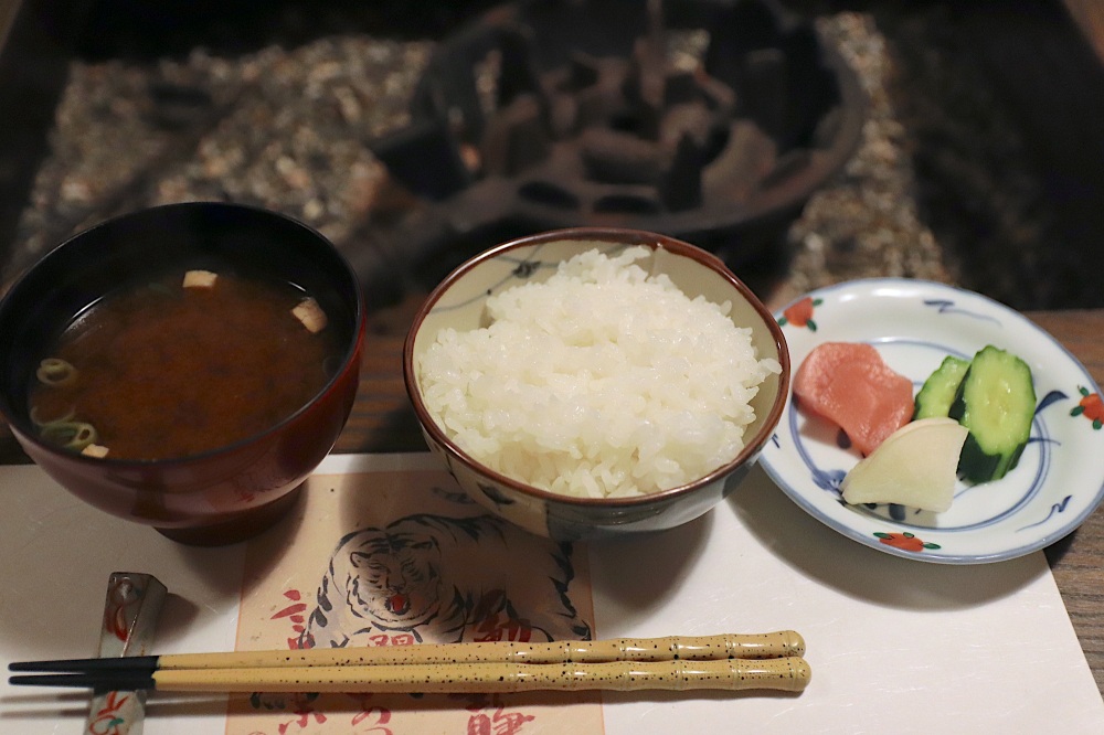 最後は自家製のお漬物と、地元のお米を一緒に。「和仁農園」のコシヒカリは、一粒一粒が甘くしっかりしており、感動レベルのおいしさでした。