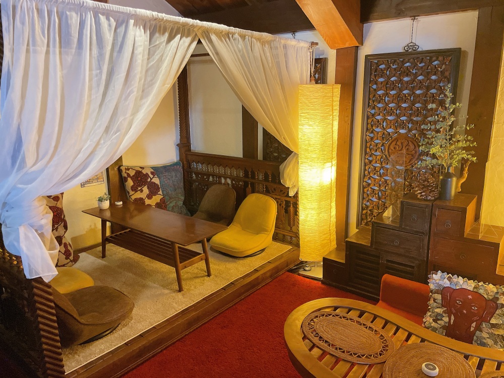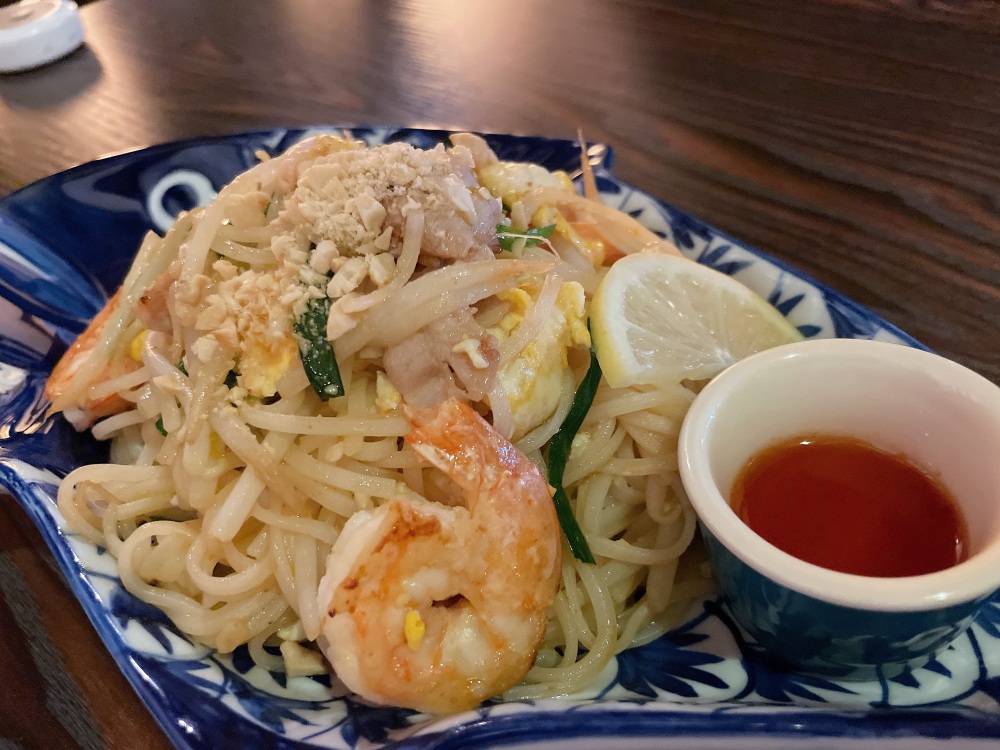 この日注文したのは、グリーンカレーのセット。ココナッツが優しくて、辛いけれどマイルドでクセになります。パッタイ(タイ風焼きそば)は、現地の味を食べやすく、麺もオリジナルで少し細麺にアレンジしてあります。色々なタイプの席があり、時間を忘れて長居してしまいそうな空間です。