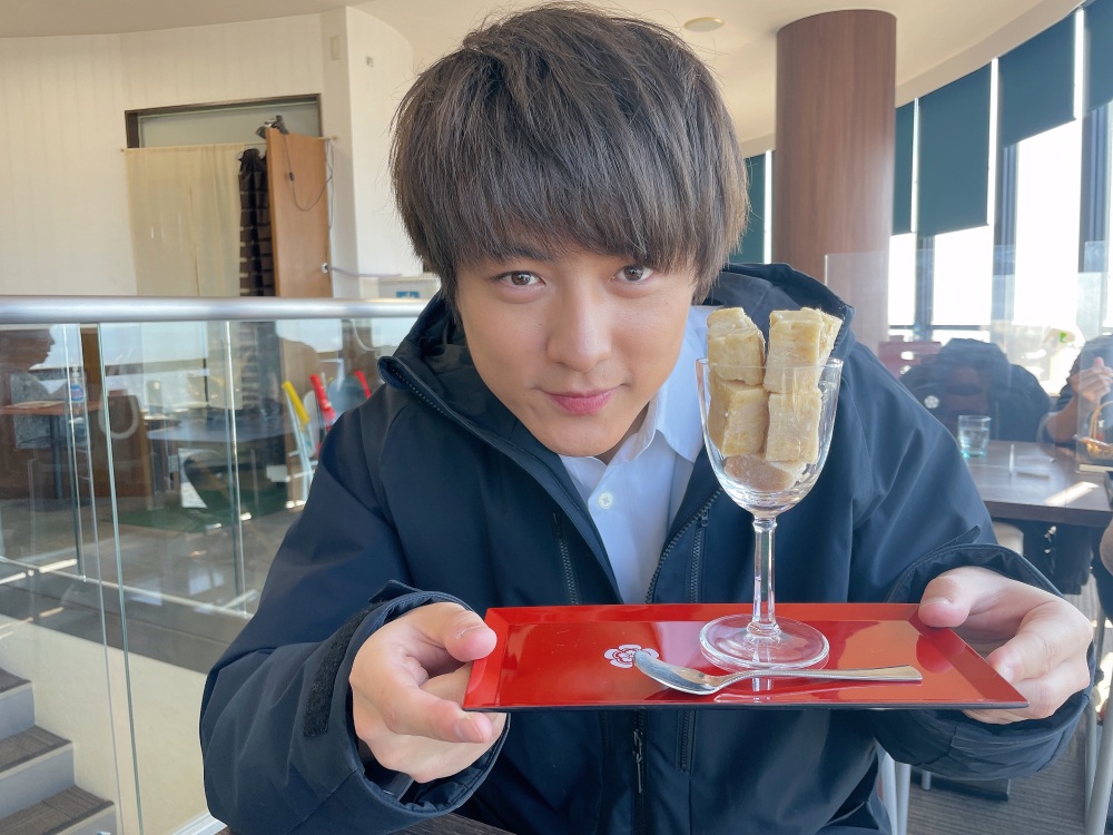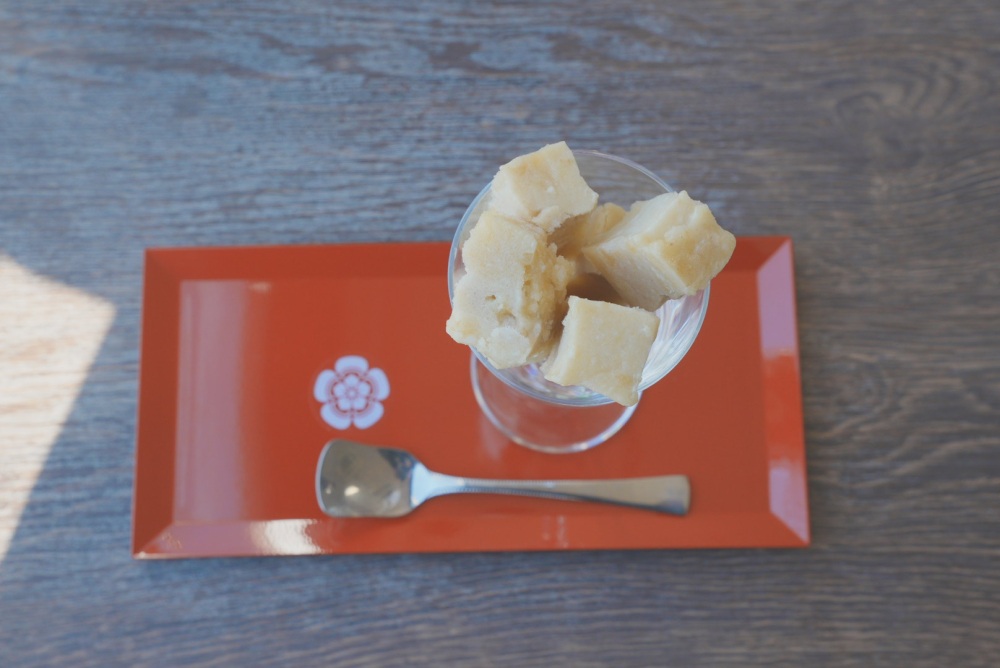 そしてもう一つは、信長公が見た城下町と「家紋アイス」を一緒に写真に収めること。この家紋アイスは凄いんです。この景色を撮るために作られた、と言っても過言ではないのでは?家紋が浮き上がって見えるように工夫されており、葛を使用しているため写真を撮る間も溶けず、食感はモチモチ。岐阜県産の苺が使用されています。