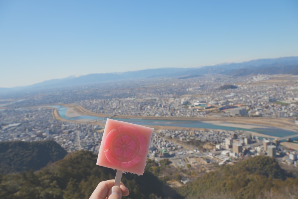 期間限定ですが展望台内で購入できます。SNSを利用されている方は、この家紋アイスと素晴らしい岐阜の景色を写真に撮って、拡散してくださいね。