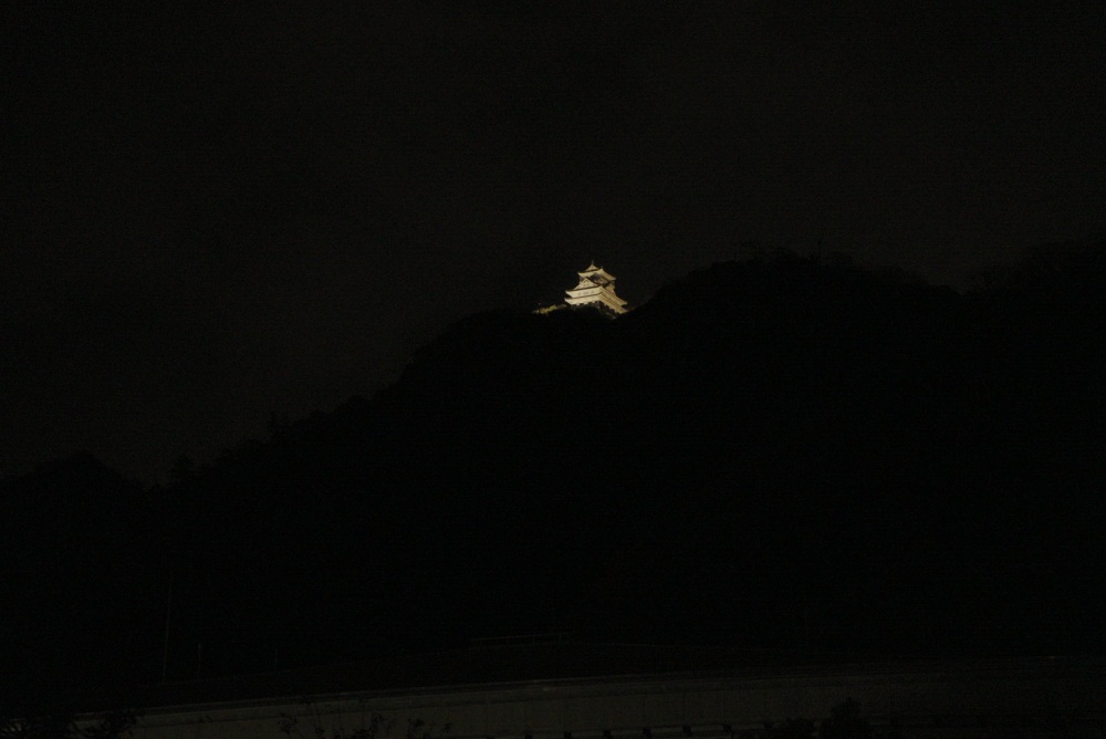 「もつ鍋 信長 本店」は、店舗前からも岐阜城が見えますが、お店の第二駐車場から見る岐阜城も素敵です。この日は夜に訪れましたので、ライトアップされカッコよくそびえ立つ岐阜城を見ることができました。
