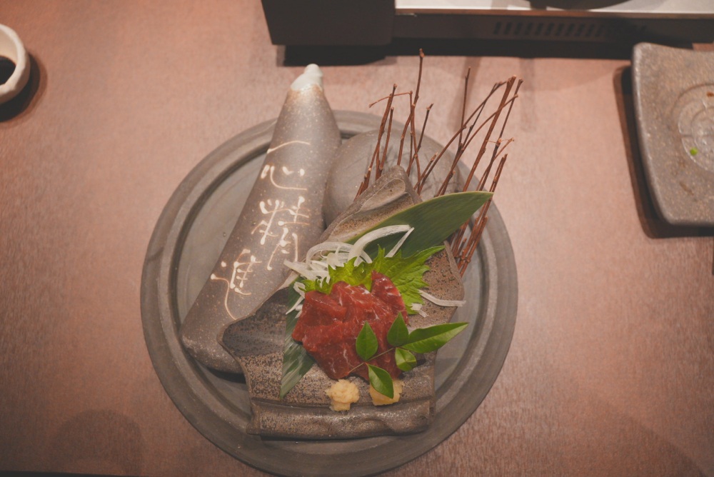 名物「信長焼き」、炭火たたきの相盛り、馬刺し…どれもおいしいです。取り皿やグラスにも信長公を感じ、1日の締めくくりができる感じがとても良いです。何度でも訪れたくなるお店です。